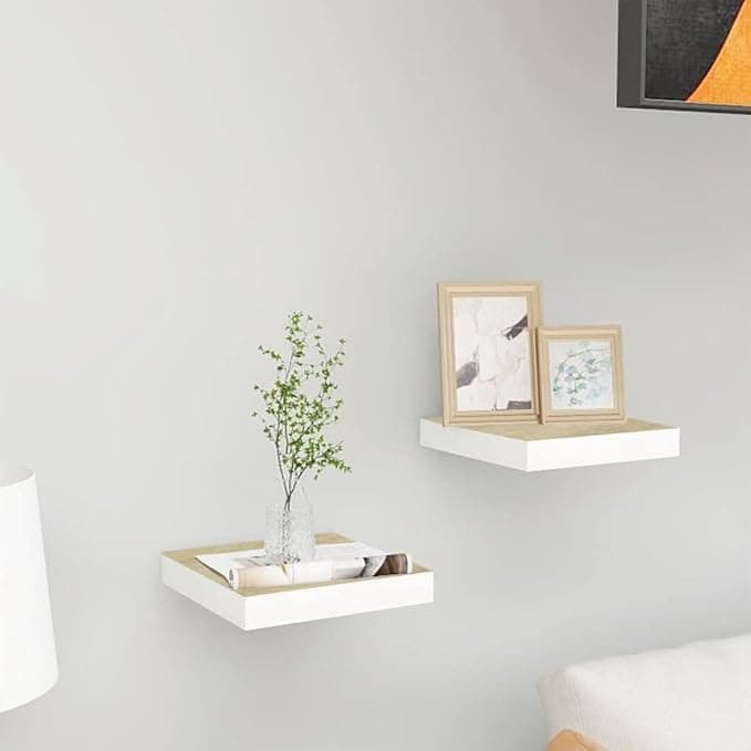 KTHLBRH (Fast delivery) Floating Shelves Wall Shelves - Decorative Floating Wall Shelves,for Bedroom,Living Room Floating Wall Shelves 2 pcs Oak and White 9.1"x9.3"x1.5" MDF