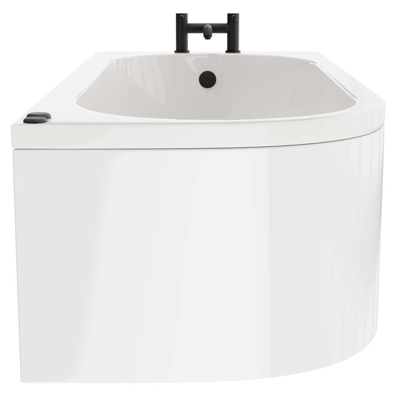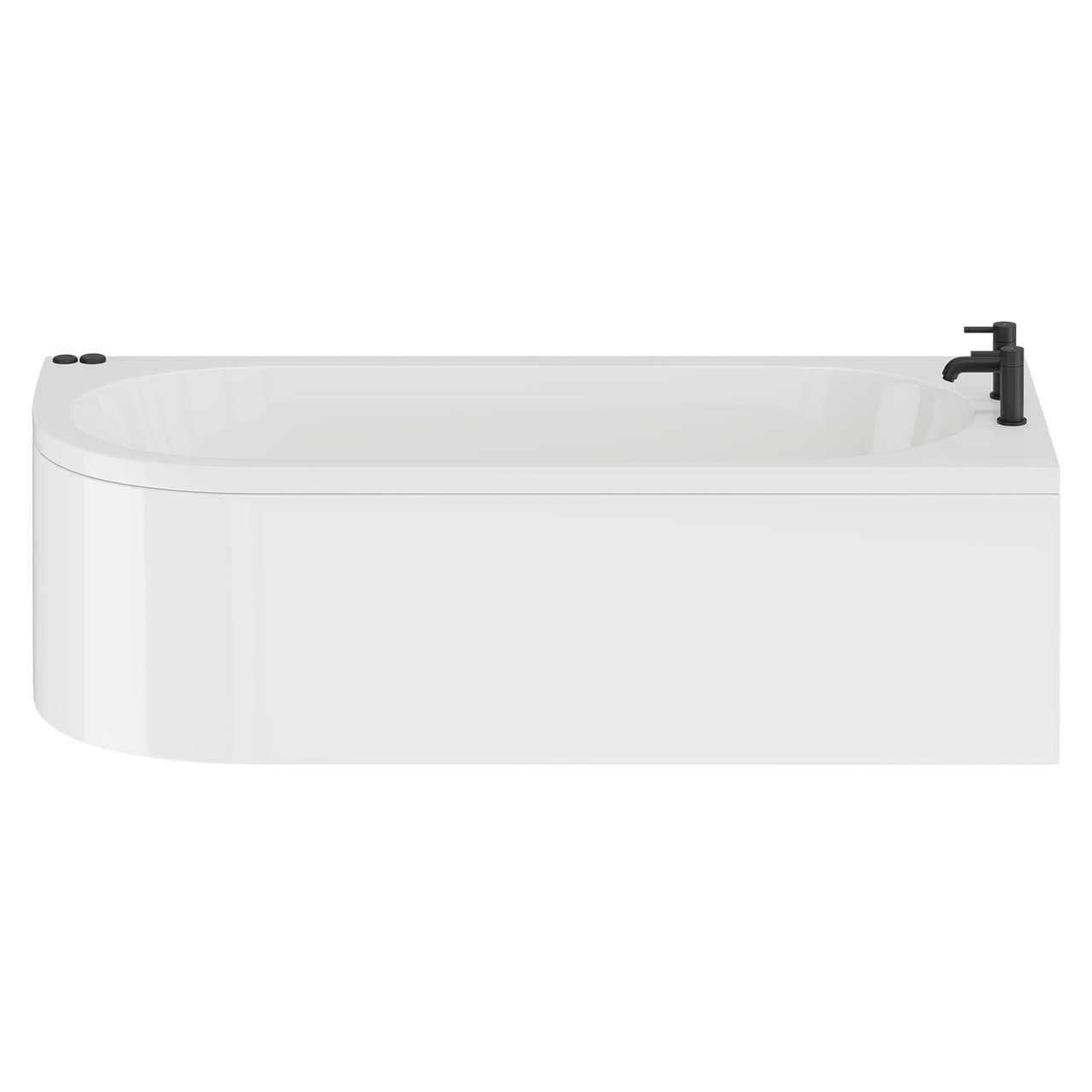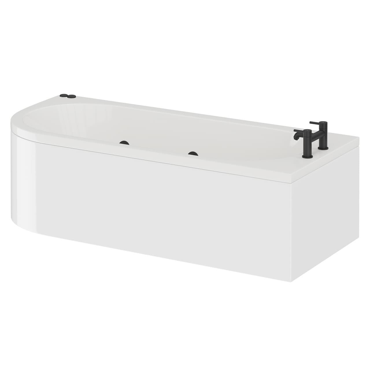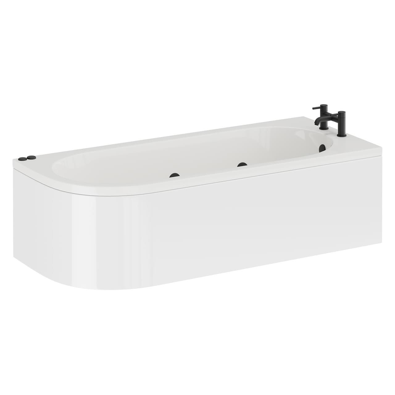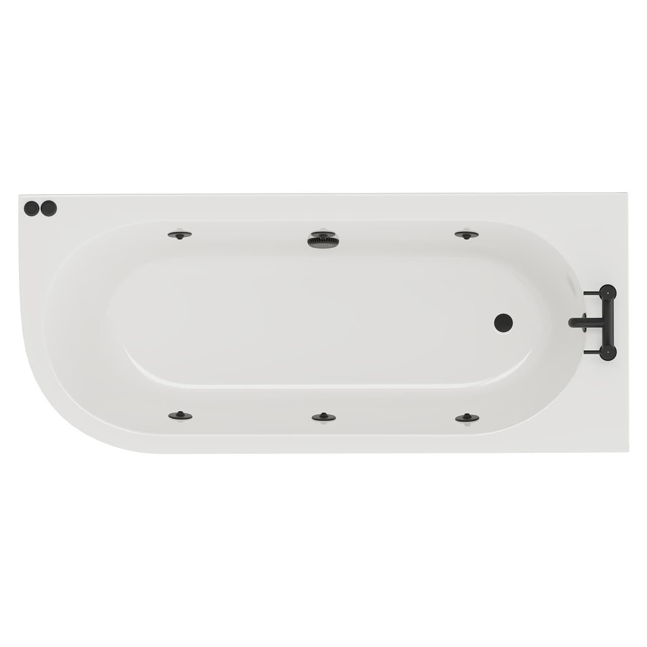 Arc 1700mm x 750mm 6 Jet Matt Black V-Tec Right Hand Curved Whirlpool Shower Bath with White Acrylic Front Bath Panel