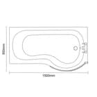 Wholesale Domestic Plage 1500mm Right Hand P Shaped Shower Bath with Matt Black