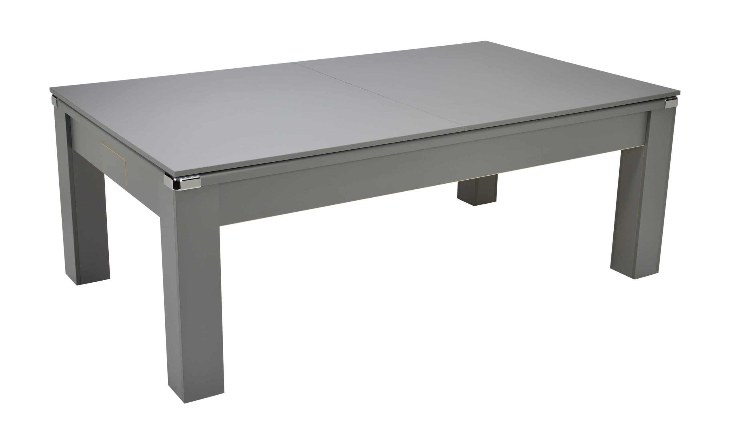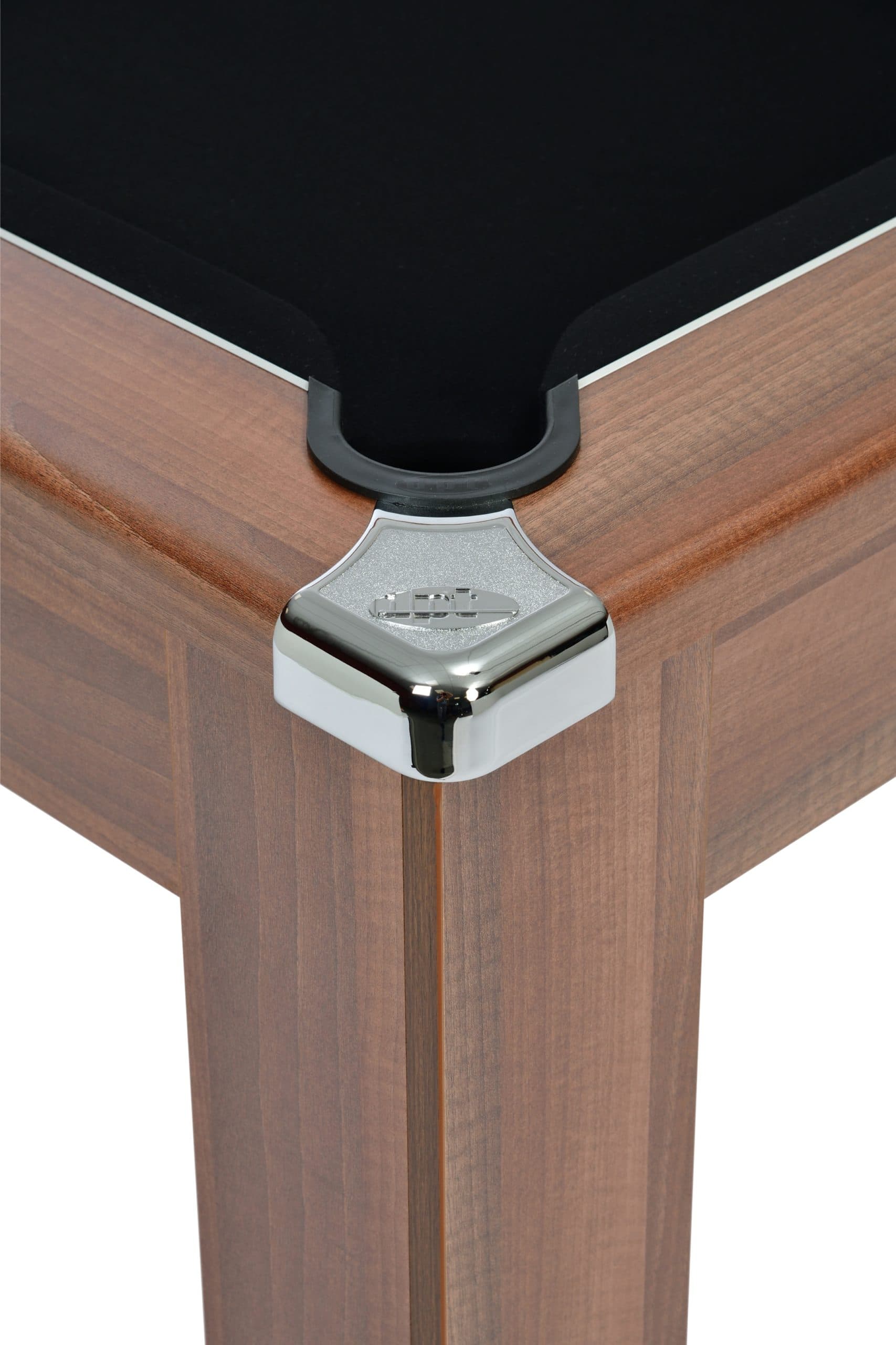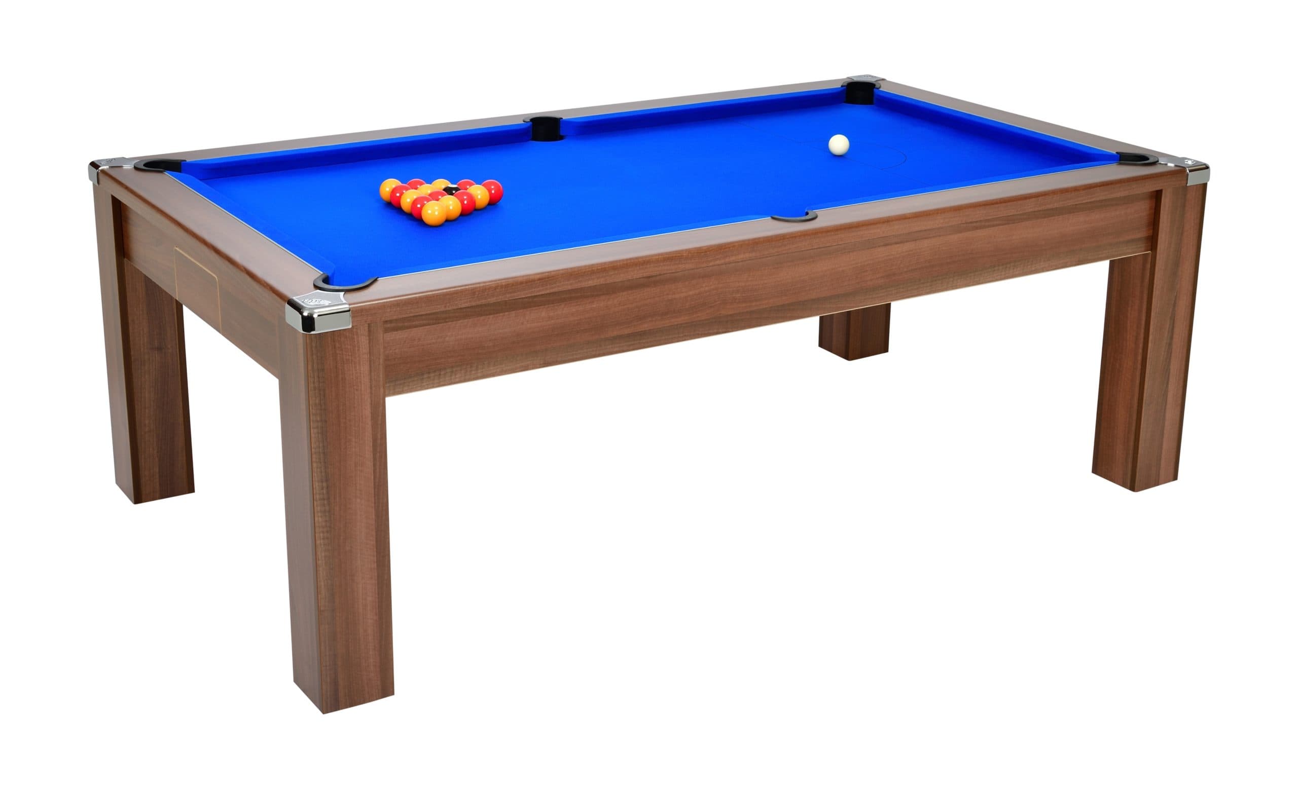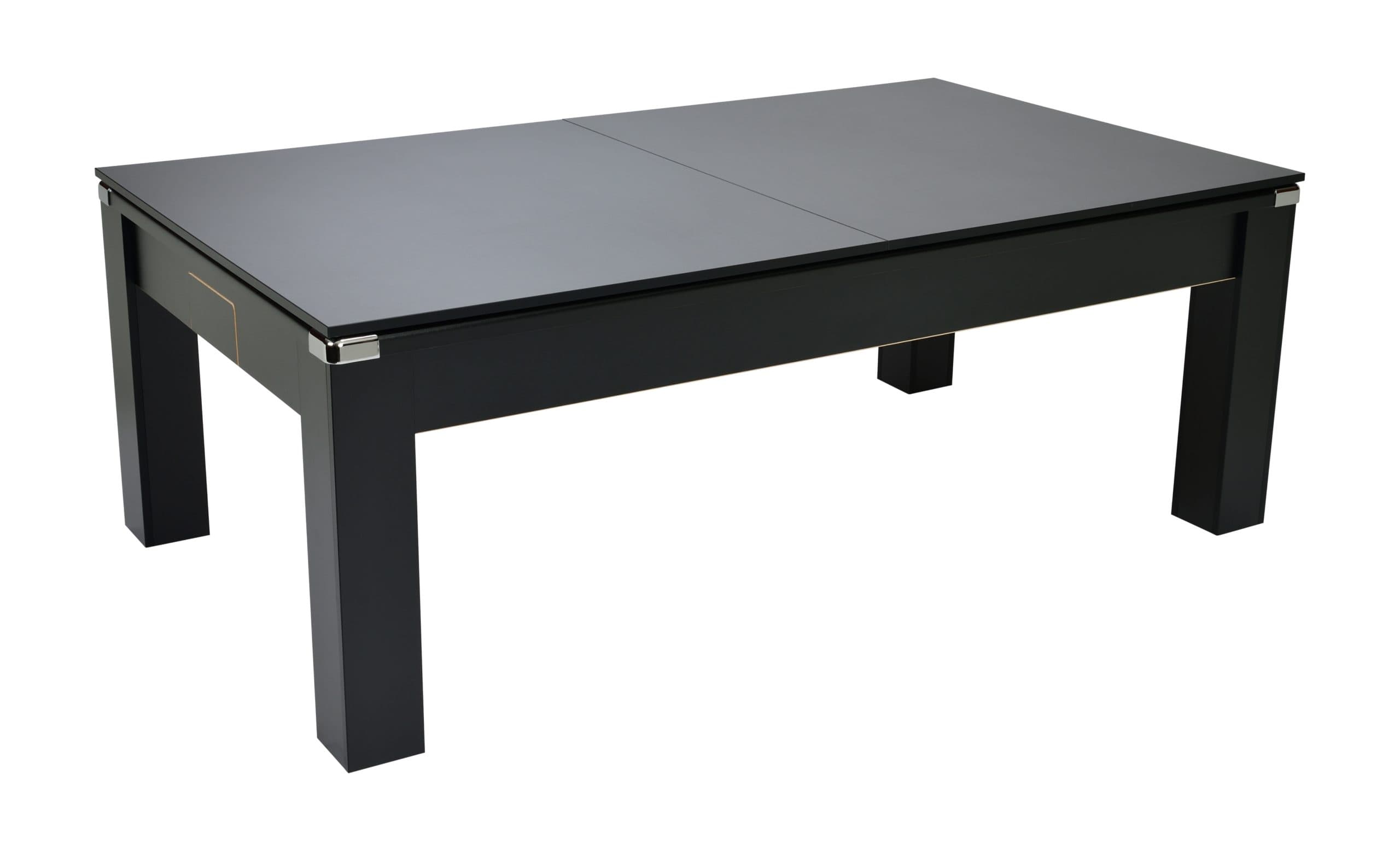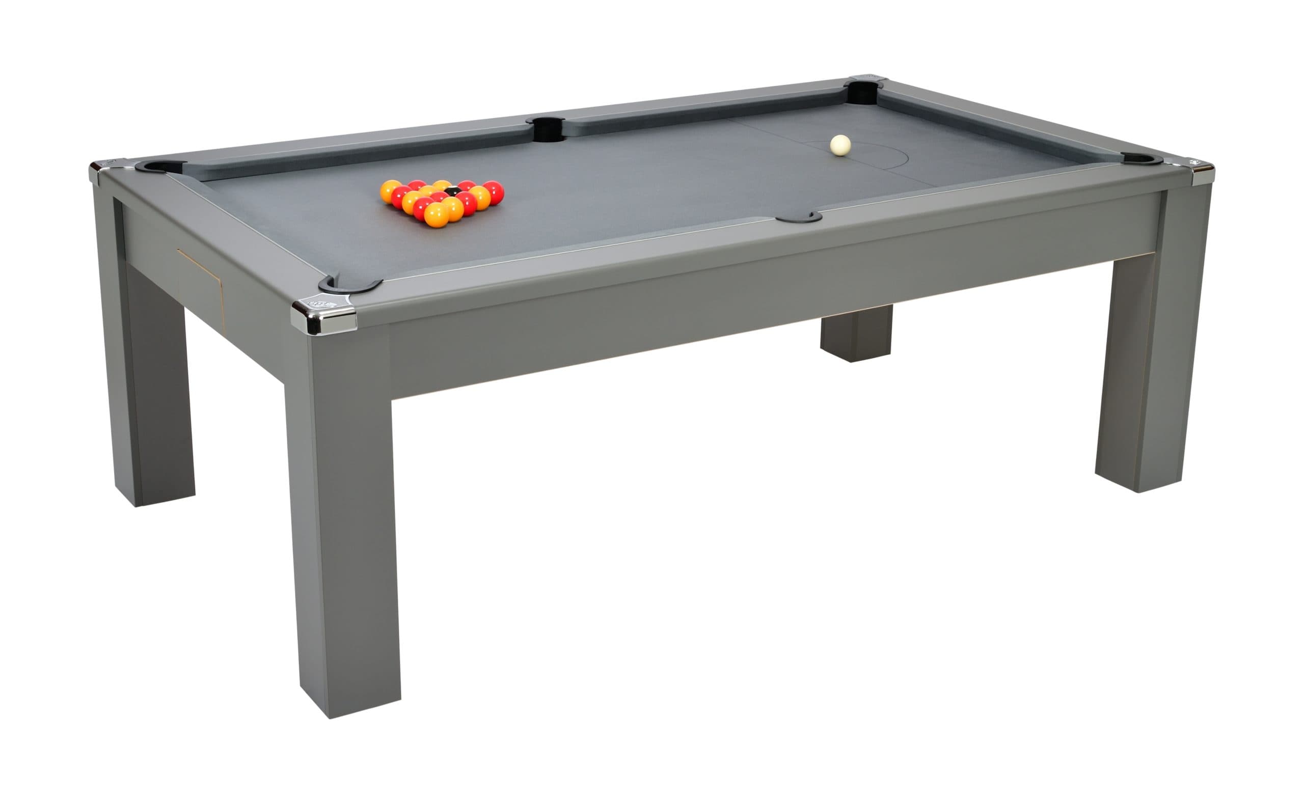 The D.P.T Avant Garde Pool / Dining Table is manufactured in the UK and is suitable for domestic locations. Available in a choice of cabinet finishes and Strachan West of England cloth colours. You can also choose between 6ft and the popular 7′ (standard league size) table options. Complete with a two piece matching dining table top. Supplied with Aramith Red and Yellow balls, 2x cues, triangle and chalk.