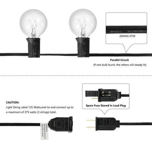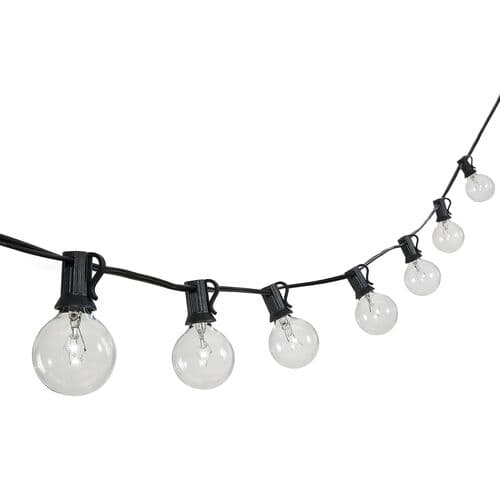 Add instant lighting to your patio, deck or balcony with our bright white Outdoor Globe Lights; 25 clear glass bulbs are spaced 12" apart along a 25' cord. Perfect bistro-style lighting for wedding, party, or camping, our Globe Lights stand up to rain and wind. Leave them up all summer for entertaining outside, or keep them up all year in mild climates.