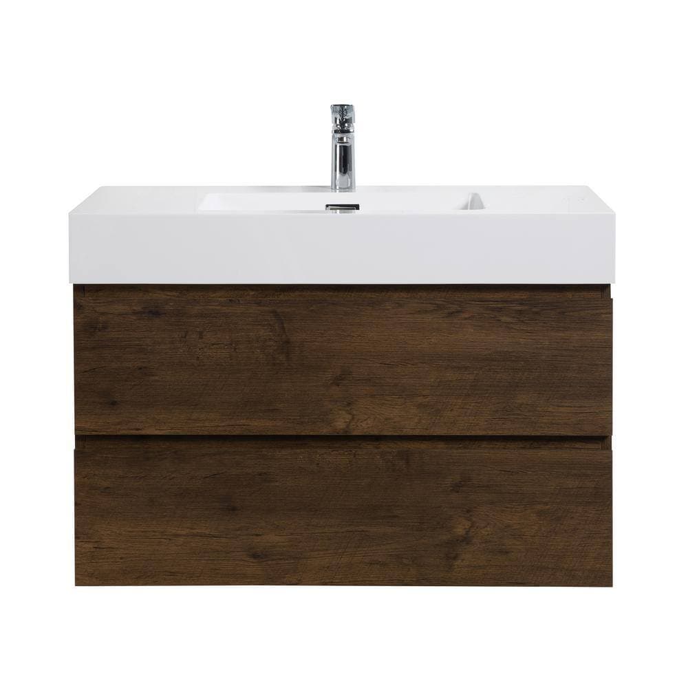 Sanlan Alice 36.00 in. W x18.10 in. D x 25.20 in. H Floating Bath Vanity in Brown Wood with White Top