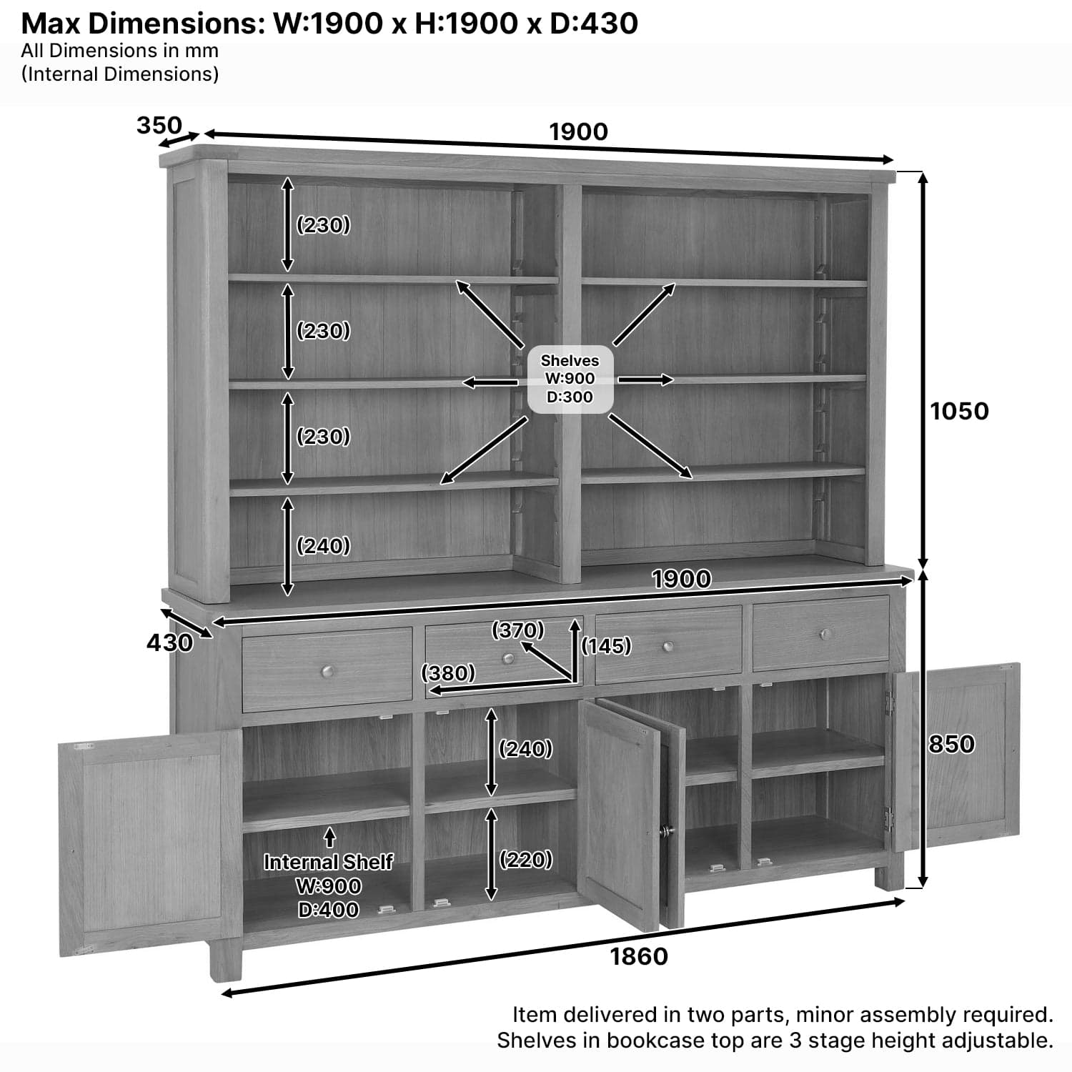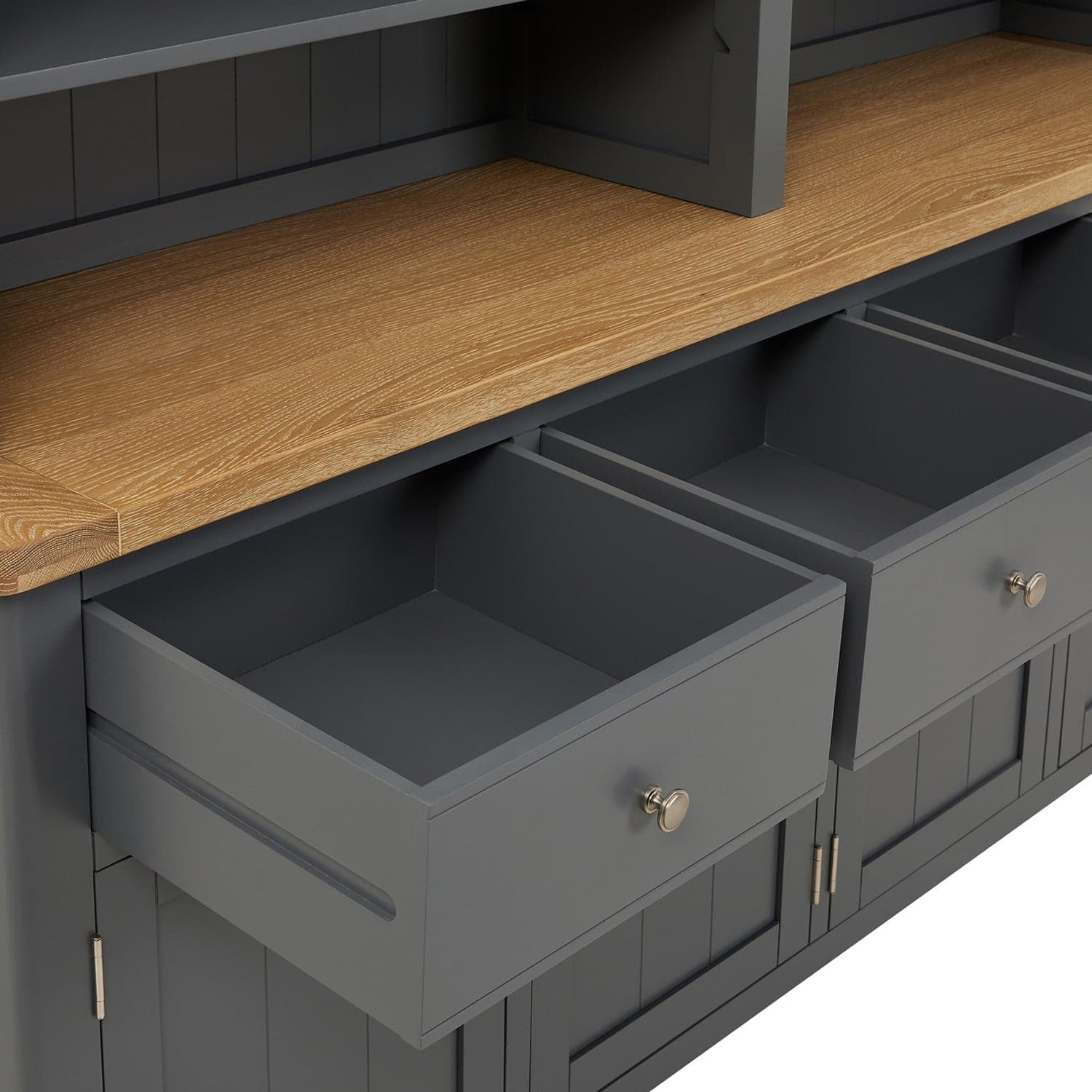 Experience the ultimate in kitchen storage with the Maleah Kitchen Storage Pantry Cupboard, designed to accommodate even the most demanding storage needs. This extra-large sideboard base offers an impressive amount of space, making it the perfect addition to any kitchen. Equipped with four generously sized drawers, the Maleah Pantry ensures that your utensils, linens, and other essentials are always within reach. Each drawer is fitted with drawer stops to prevent overextension, ensuring smooth and secure operation. The four cupboard doors open to reveal two large open cupboard areas, providing versatile storage options for everything from small appliances to bulk food items. The top section of the Maleah Pantry boasts six height-adjustable shelves, allowing you to customize the interior space to perfectly fit your storage needs, whether for tall jars, stacked dishes, or kitchen gadgets. It's the ideal solution for those who need extensive storage without compromising on style. Keep your kitchen organized, functional, and stylish with the Maleah Pantry.