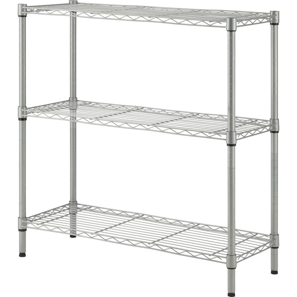 Light-Duty Wire Shelving features a shine and elegance that can be used in public view as well as storage areas. The three steel wire shelves are supported by sturdy, 1" diameter steel posts with a silver epoxy finish. Both shelves and posts have a silver epoxy finish. With a 250 lb. capacity per shelf, you can use the wire shelves for books, decor and supplies. Adjust shelves in 1" increments to customize the space you need between them.