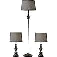 This elegant brass finished lamp set will make the perfect addition to your home. It comes with two table lamps and one floor lamp. It has a fine antique brass finished base with a textured white linen hardback shade. Each lamp takes a 150-Watt bulb or LED/CFL 3-way equivalent.