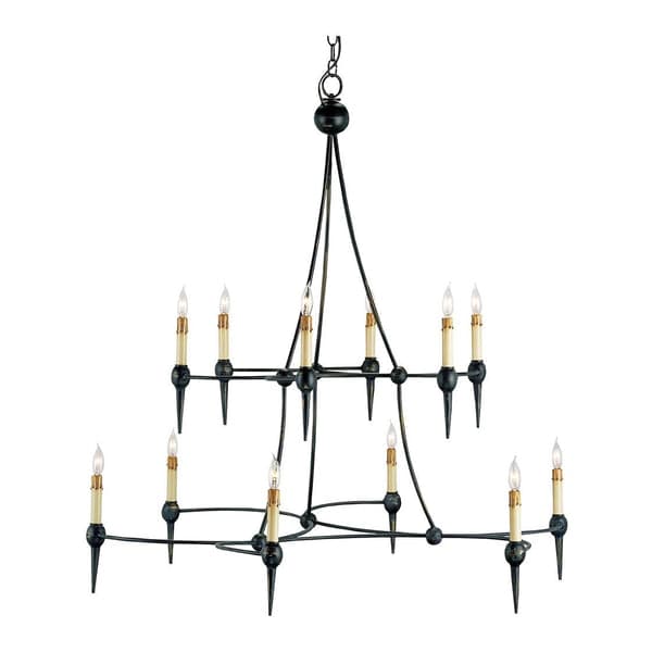 With its sleek profile and ample illumination, the Goldie Chandelier creates a warm and inviting ambiance. Resembling intersecting planets in motion, its two-tiered design adds depth and dimension, while the French black finish enhances its sophisticated aesthetic.