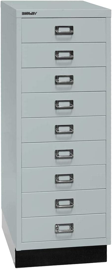 BISLEY MultiDrawer, Serie 39 con Base, DIN A3, 9 cassetti, Acciaio Inossidabile, 645 Grigio Chiaro, 43.2 x 34.9 x 94 cm