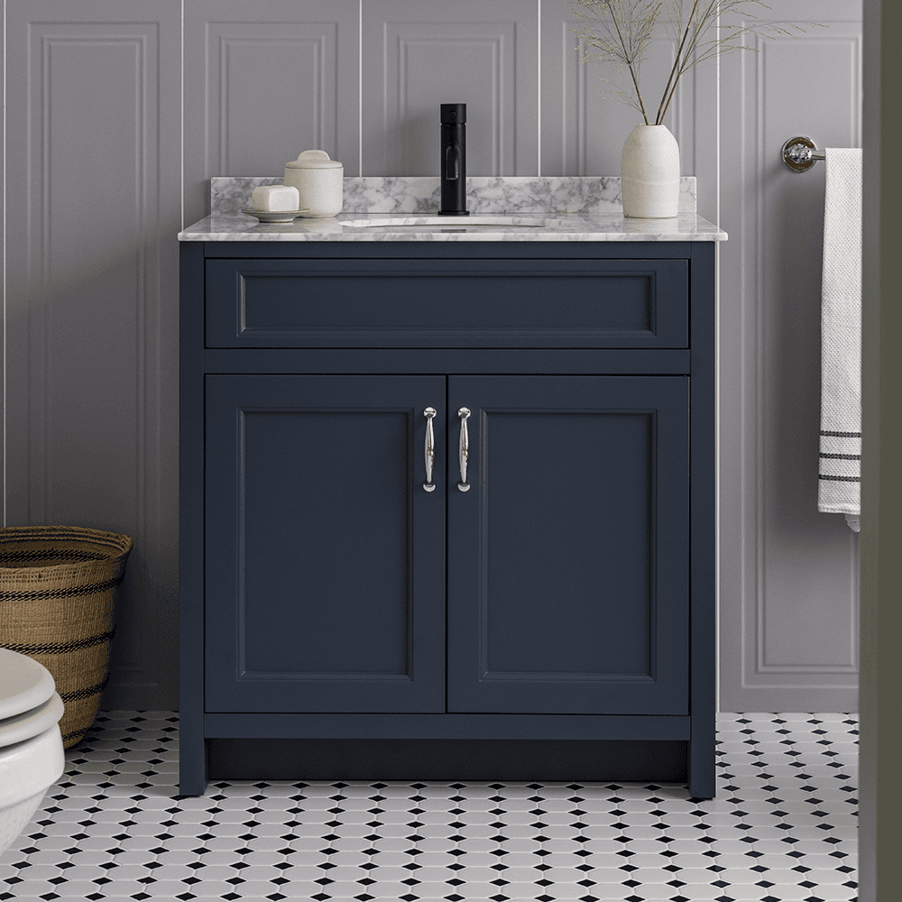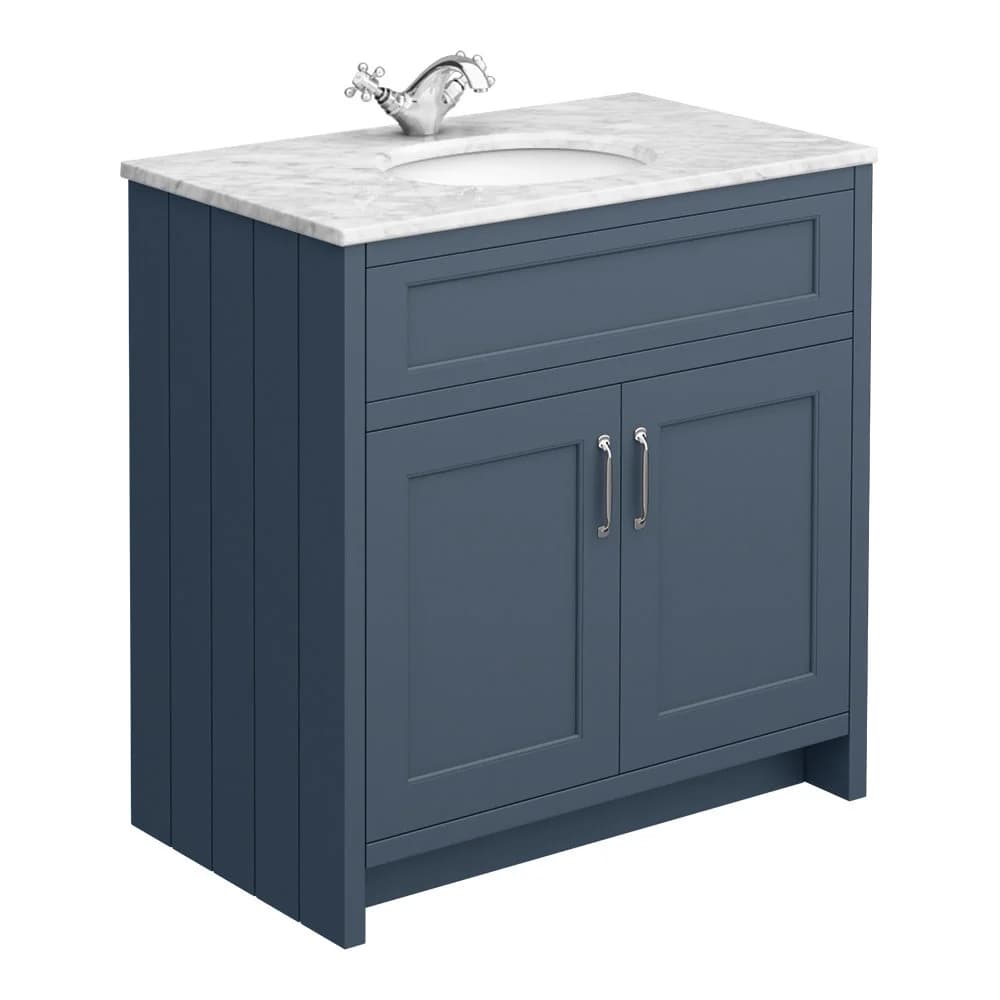 Chatsworth Blue 810mm Vanity with White Marble Basin Top