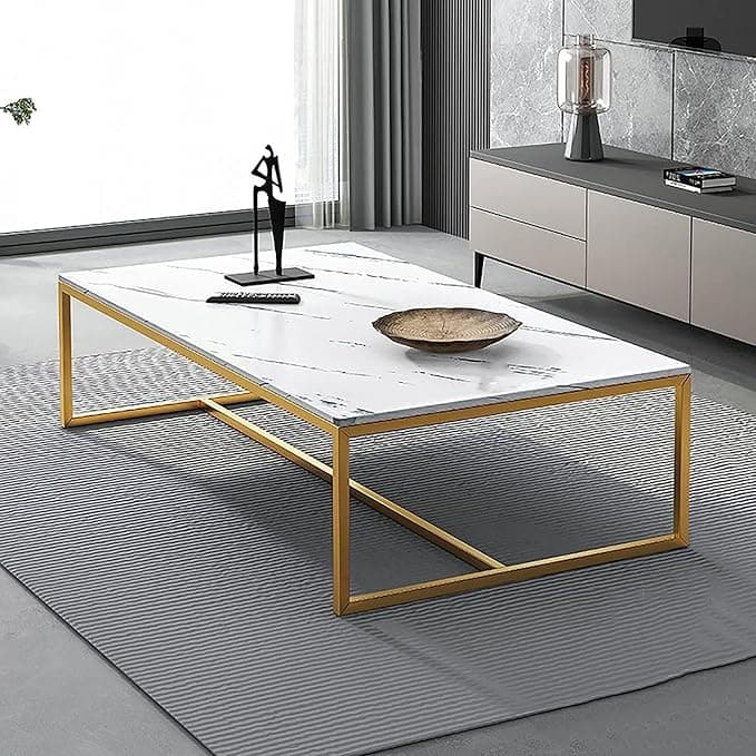 Coffee Table, Open Rectangle Table, Faux Marble Coffee Table with Metal Frame, Middle Table for Living Room or Reception Room (Color : Grey + Black, Size : 100 x 50 x 42 cm) (White+Gold 100 x 5
