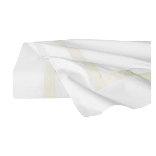 The understated sophistication of Estate's crisp white, Italian-woven long-staple cotton base is an immaculate backdrop for lustrous sateen appliqué detail, beautifully bordering this collection to create a sense of tailored elegance.