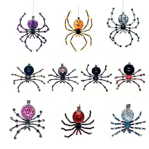 Halloween Decorations 10 pcs Beaded Spiders Kit | Halloween Stained Glass Window | Halloween Home Decor | Halloween Spiders Set