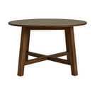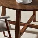A classic table for a natural look. Made from solid wood with a walnut stained finish, this chunky round table with criss-cross base is full of warmth and charm, perfect for family meals and get togethers with friends. Easy to live with, just add chairs, guests and dinner.