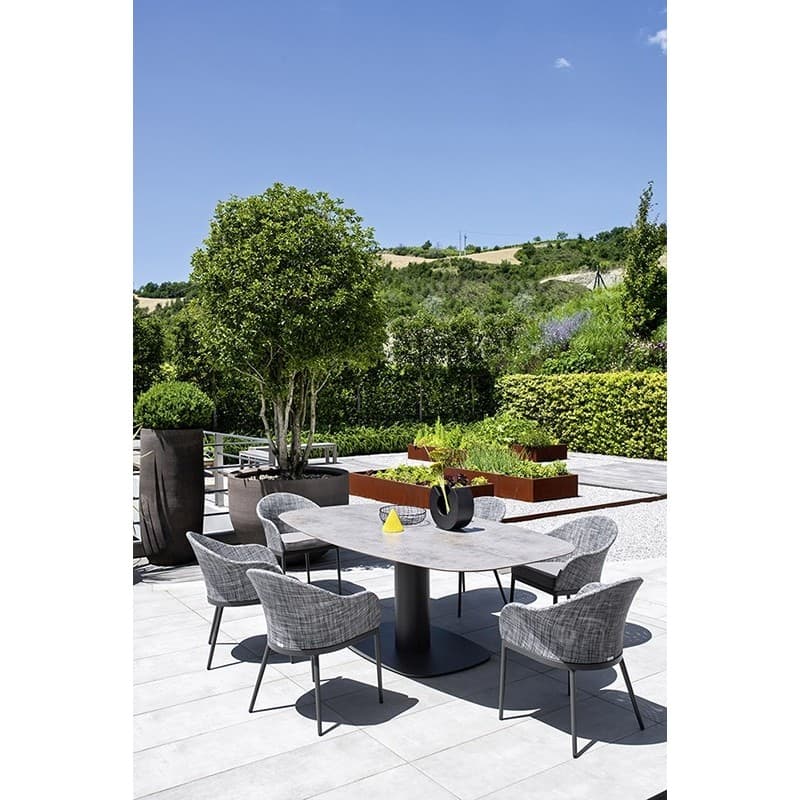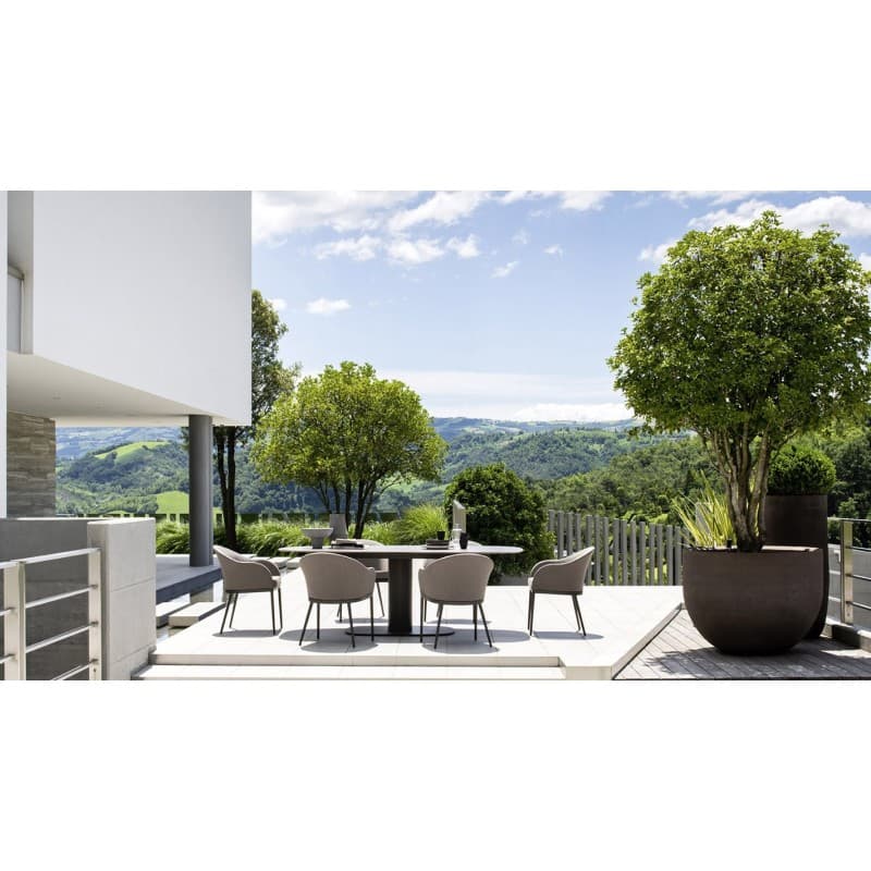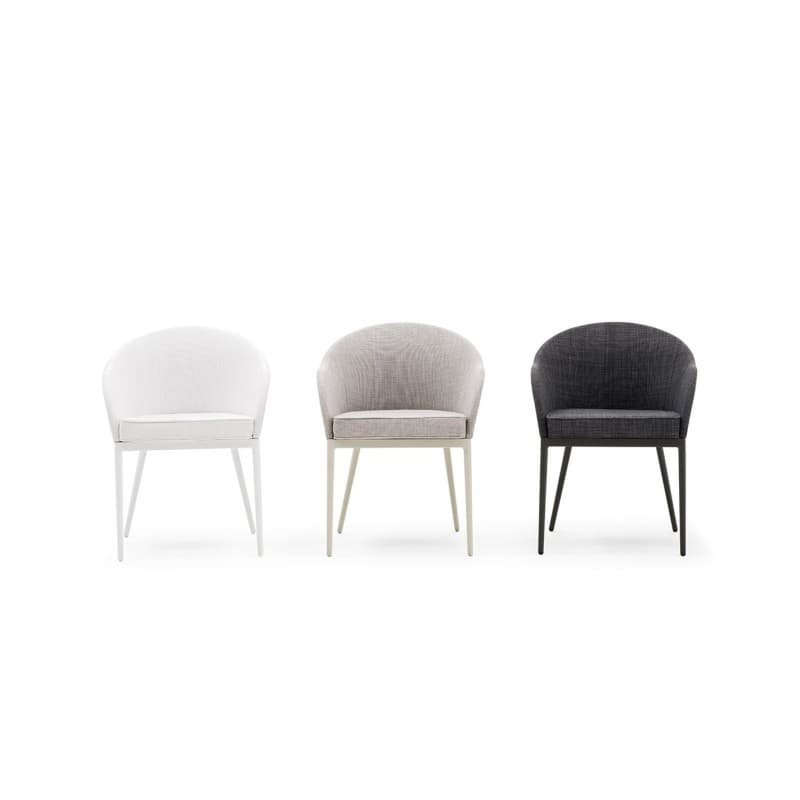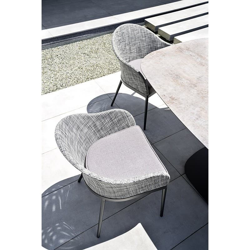 Clever ist ein Outdoor-Sessel von Varaschin, der sich durch ein modernes und geradliniges Design auszeichnet. Er ist Teil einer Stuhlkollektion mit pulverbeschichteter Aluminiumstruktur, Sitzen und Rückenlehnen aus VAR#TEX. Auch verfügbare Version mit strukturiertem Sitz und Rückenlehne aus synthetischem Kabel. Optionales Kissen mit Outdoor-Polsterung. Ideal zum Entspannen im Freien, Varaschin ist eine Marke, die für Gartenmöbel geeignet ist.
