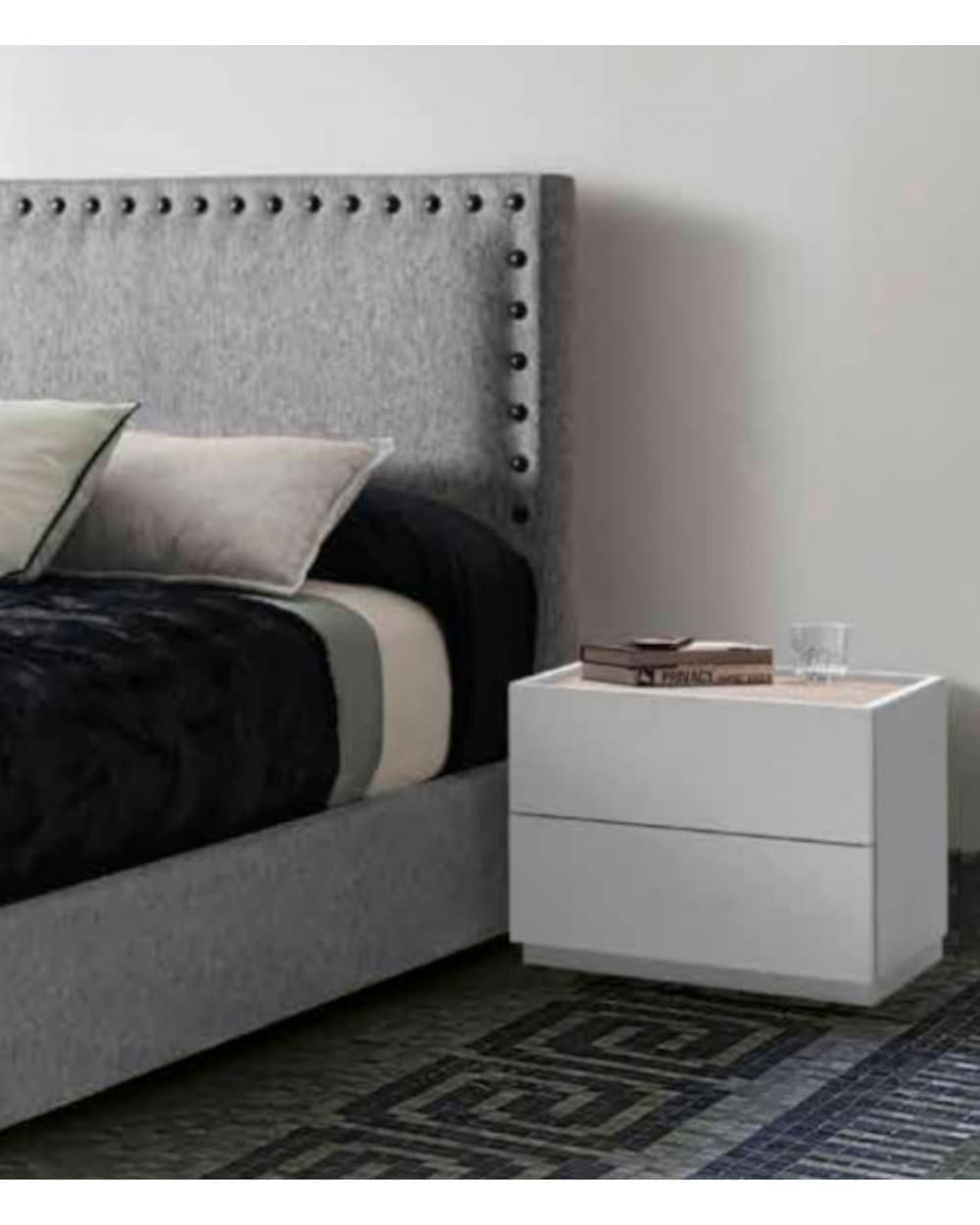 The M-162 Bedside Table is a sleek and modern piece of furniture designed to complement any bedroom decor. It features two spacious drawers that operate with a convenient push system, eliminating the need for handles and providing a clean, minimalist look. The table is finished in white with a natural wood top, adding a touch of warmth and sophistication. Its compact size makes it perfect for smaller spaces while still offering ample storage.