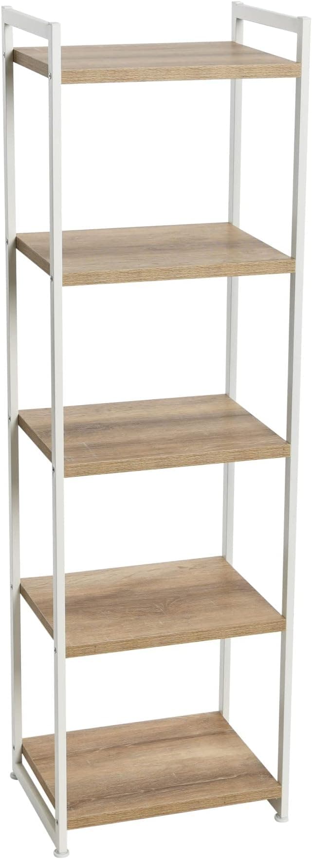 Household Essentials Jamestown - Estantería estrecha de 5 estantes, color roble costero, madera rústica, grano y metal blanco