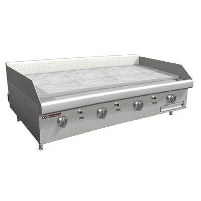 Griddle, countertop, gas, 48" W x 24" D cooking surface, 1" thick polished steel plate, manual controls, battery spark ignition, stainless steel front, sides & 4" adjustable legs, 80,000 BTU, CSA, NSF (Note: Qualifies for Southbend's Service First™ Program, see Service First document for details)