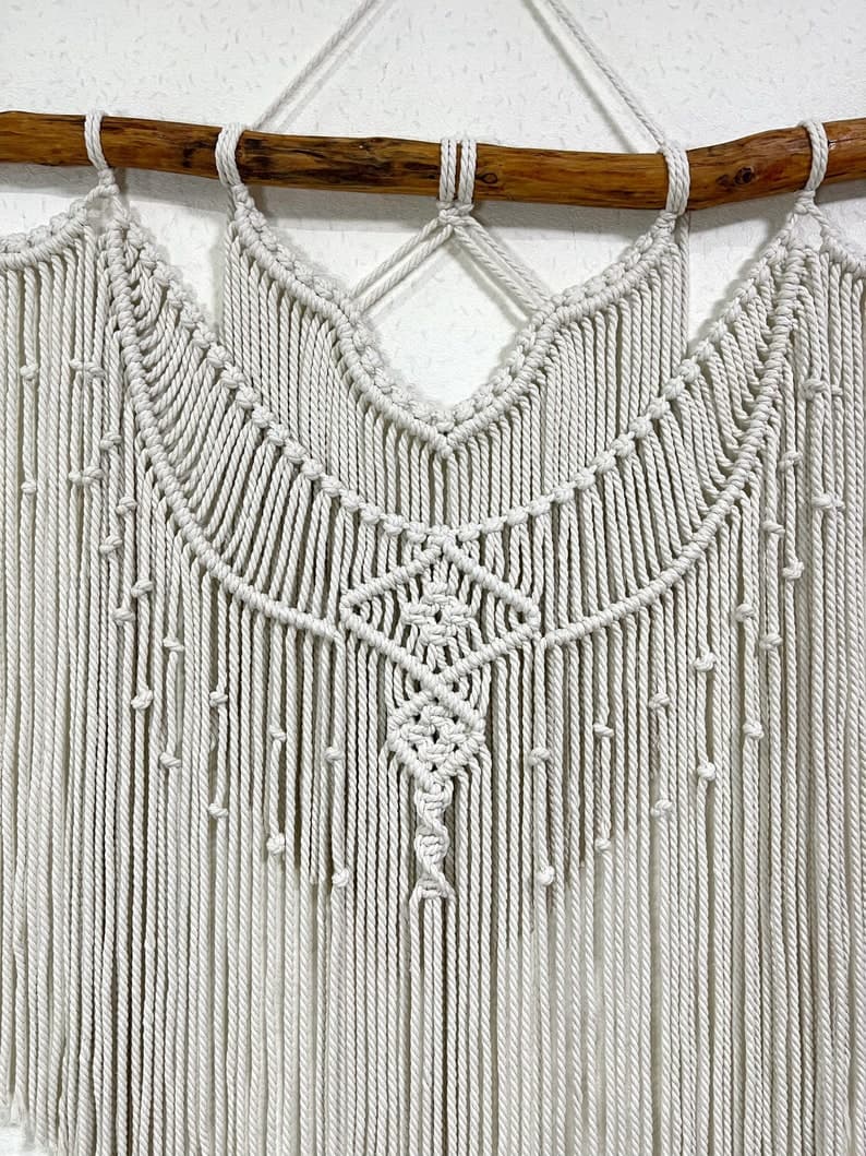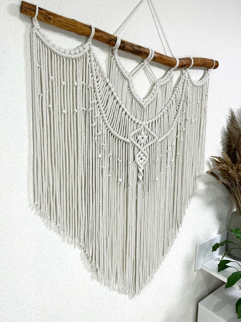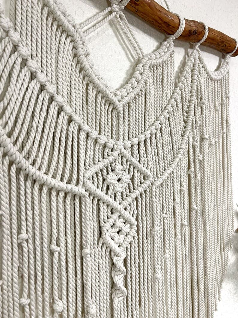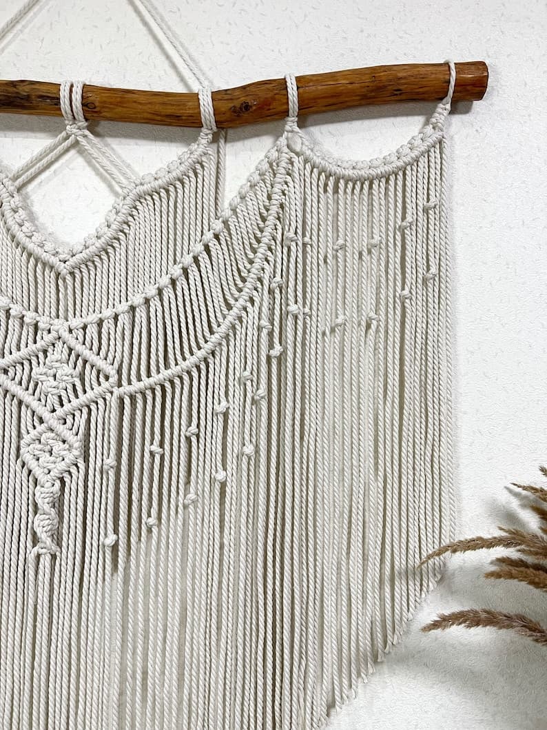 This Wall Hangings item by MagicKnitShop has 11 favorites from Etsy shoppers. Ships from Ukraine. Listed on Apr 3, 2025. Minimalist macrame wall hanging decor can be an unique addition to any room in your house, or a great gift. The wall hanging will make your bedroom, living room or nursery cozy and homely. This macrame backdrop will also be good for a wedding arch or boho wedding photo zone. The item is made of unbleached twisted cotton cord (diameter of 6 mm). Natural material. Before making this macrame I’ll send you pictures of pieces of wood for choosing. Size 41x43 inches (105x110 cm) +-. Custom orders are welcome. If you have any questions write me please. Price includes shipping. Made with love! Enjoy your shopping!