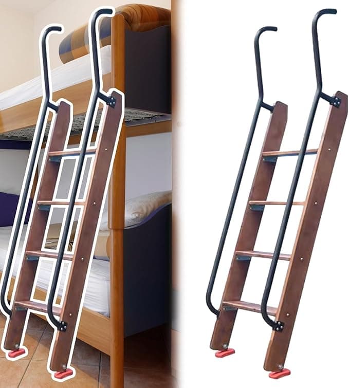 Welcome to our store We are a professional ladder shop, please trust us Our ladders make it easy to get in and out of bed, and bunk bed ladders make it easy to climb into your RV bed or roof without taking up floor space, giving you extra space. Specification: Material: wood Overall height: 125cm(49in), 150cm(59in) Load capacity: 180 kg (400 lbs) Suitable for use at a height of 1.3-1.4 meters Whether to assemble: No Features: ● Sturdy and durable vertical ladder for easy and safe climbing to the upper bunk. ● The steps are widened and deepened, making it easy to climb even with bare feet. ● The ladder has multiple rows of hook mounting holes, which you can adjust freely as needed. ● Rubber feet provide anti-slip grip and protect floors from scratches. ● Provides easy access to the upper bunk without permanently occupying valuable floor space. Package contents: - 1 × bunk bed ladder