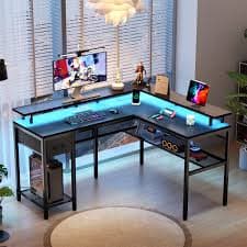 Ivy Bronx Hallsburg 55“ L Shaped Desk Gaming Desk with LED Lights & Power Outlets, Computer Desk with Storage Shelves & Reviews | Wayfair