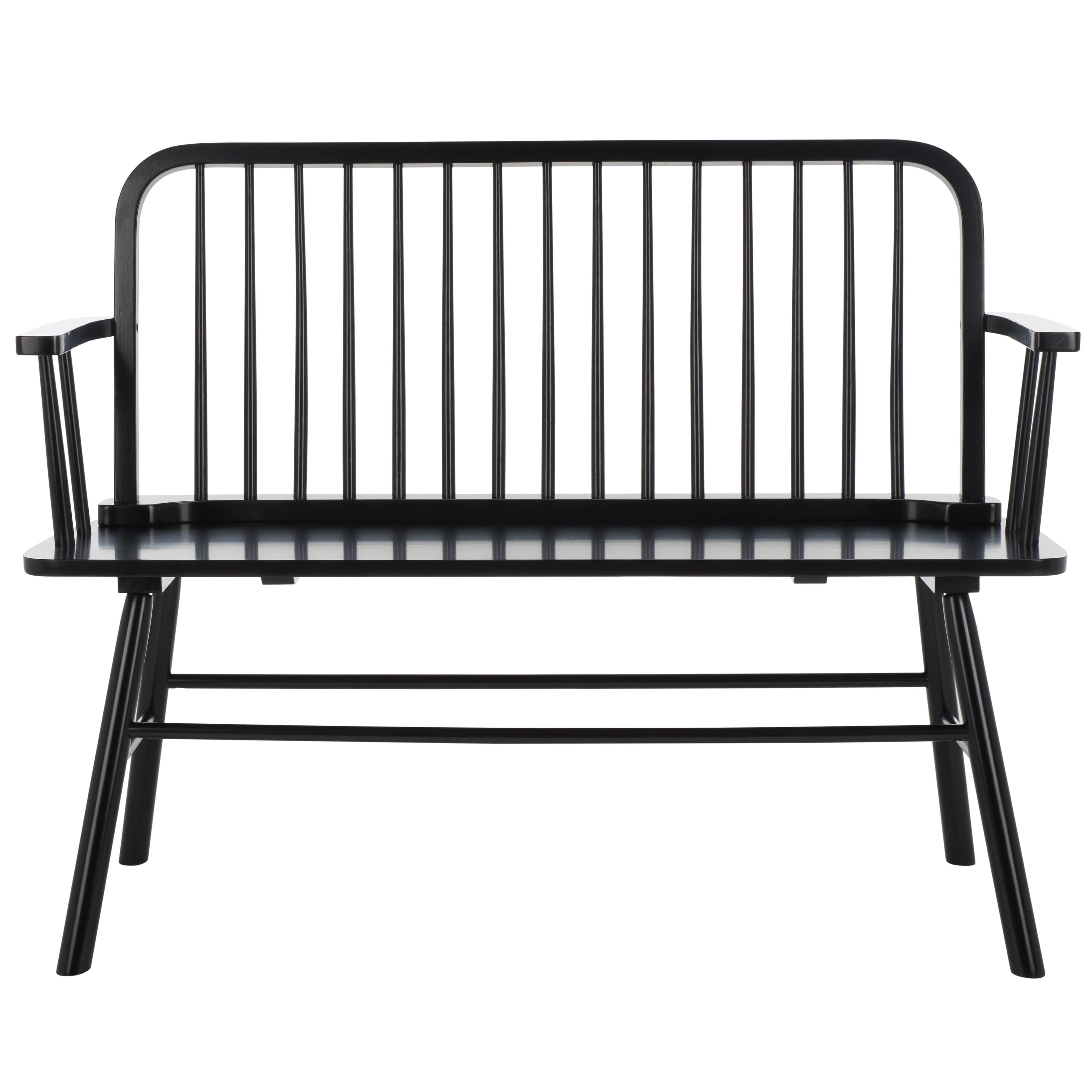Safavieh Lucilia Spindle Solid Rubber Wood Classic Indoor Arm Bench with Black Seat, Natural/White