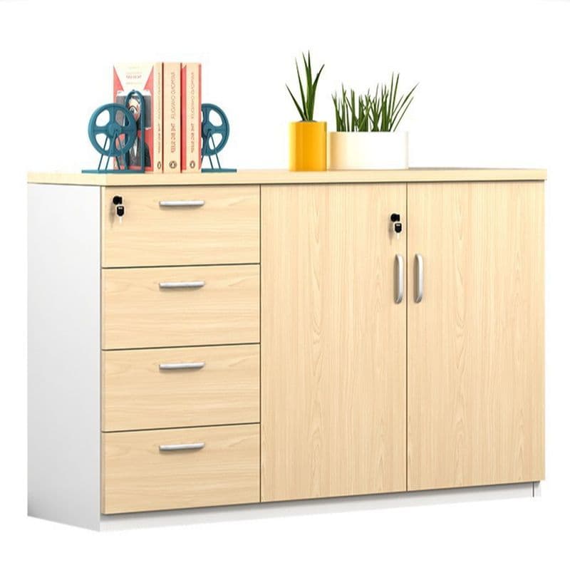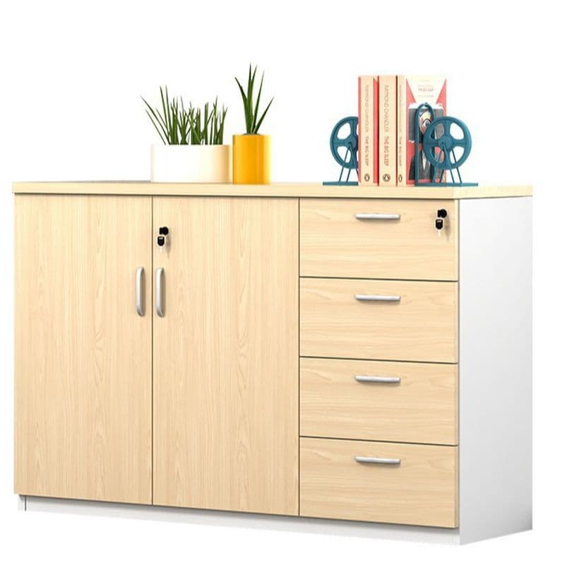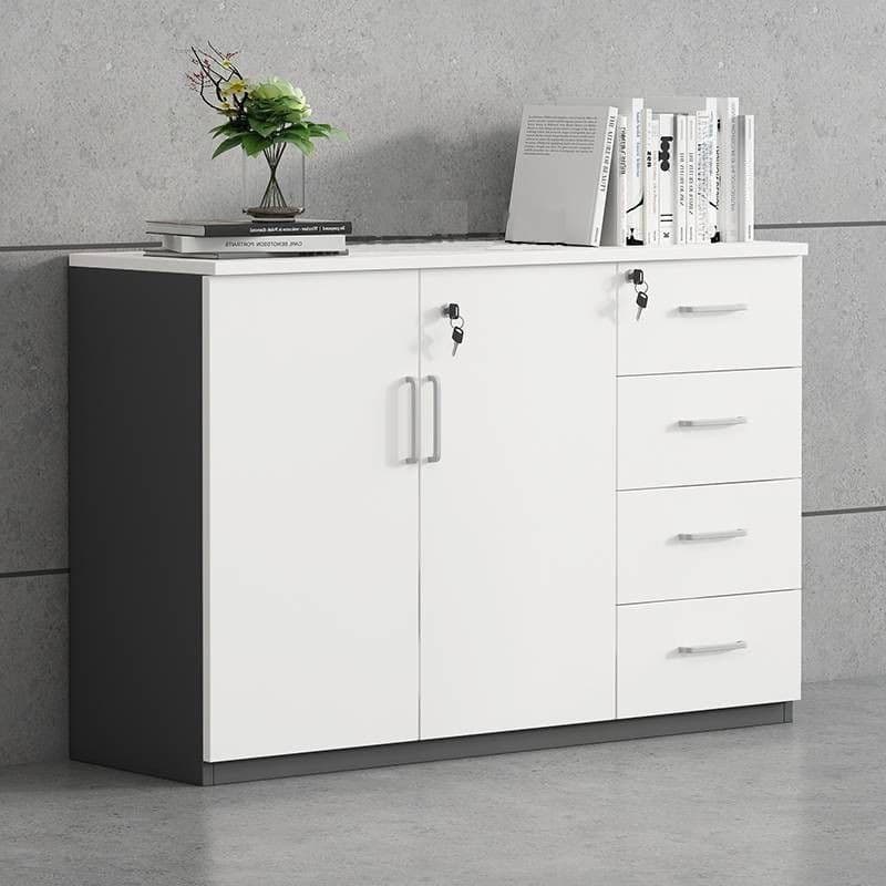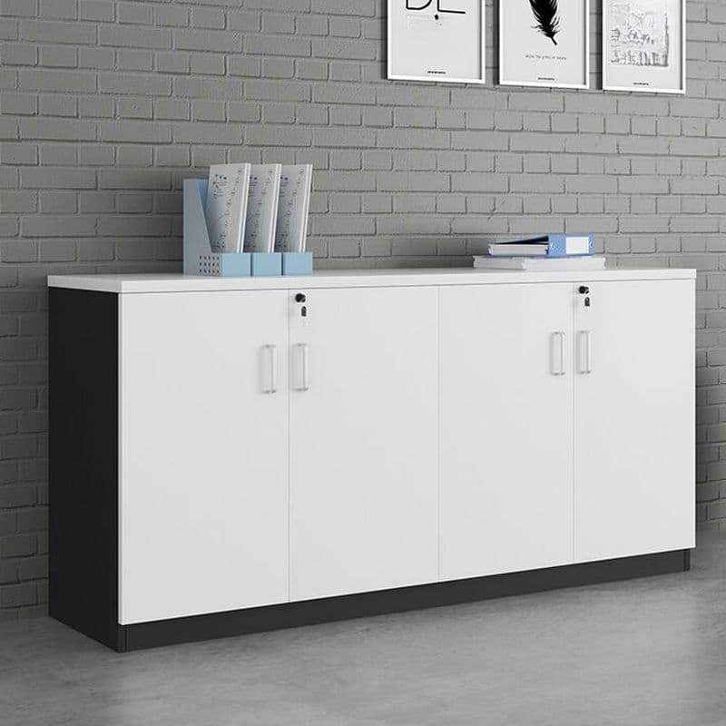 Office Horizontal Credenza Storage Cabinet with Stand, Safe, and Locker, White, 31"L x 16"W x 31"H, Drawer Not Included