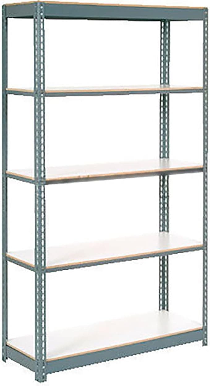 Rugged, reliable steel shelving features 1/2" thick white melamine and particleboard shelf decking for a strong, smooth and easy-maintenance surface. Sturdy 14 gauge steel frame uprights and single riveted, extra-large crossbeams provide maximum rigidity and shelf capacity. Shelves adjust at 1-1/2" increments. Fast, tool free assembly. Long lasting baked enamel finish.