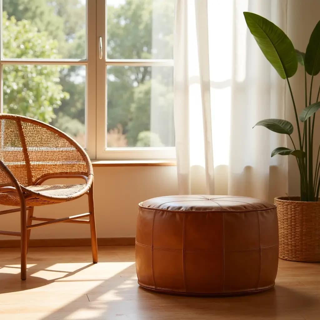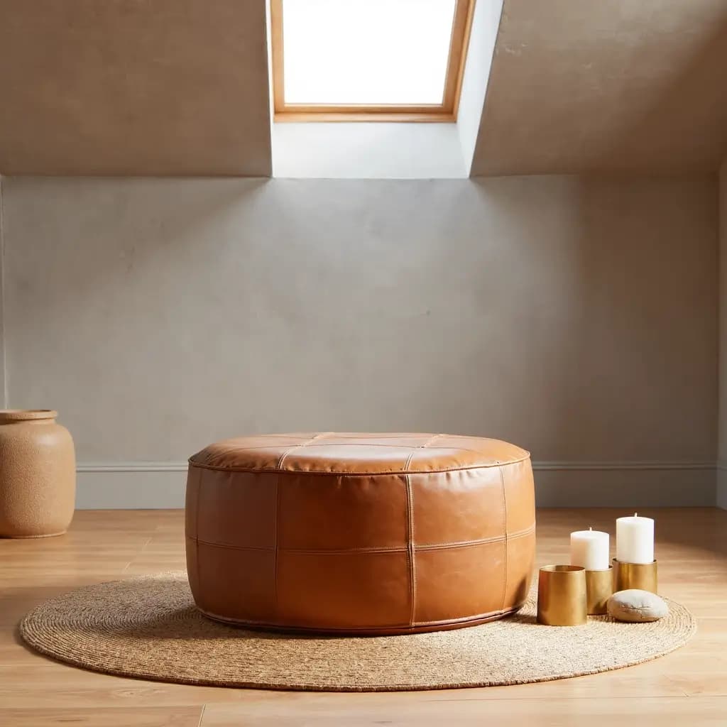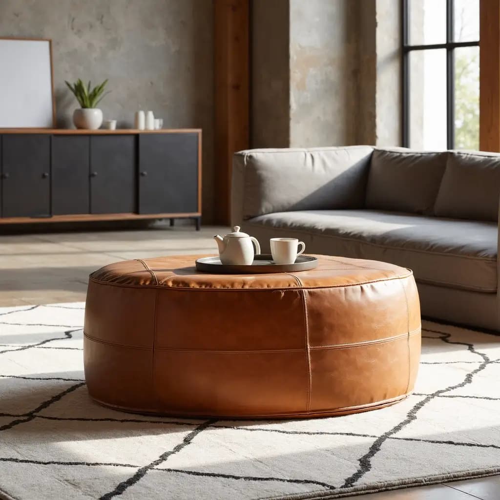 Large Moroccan Pouf – Premium Leather Ottoman & Coffee Table (14″-60″ Diameter)