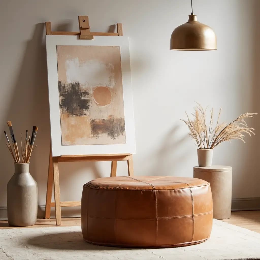 Transform your living space with our versatile large Moroccan pouf, a statement piece that serves as both an elegant ottoman and a functional coffee table. Handcrafted in rich light brown leather, this oversized piece brings authentic Moroccan craftsmanship to contemporary interiors.