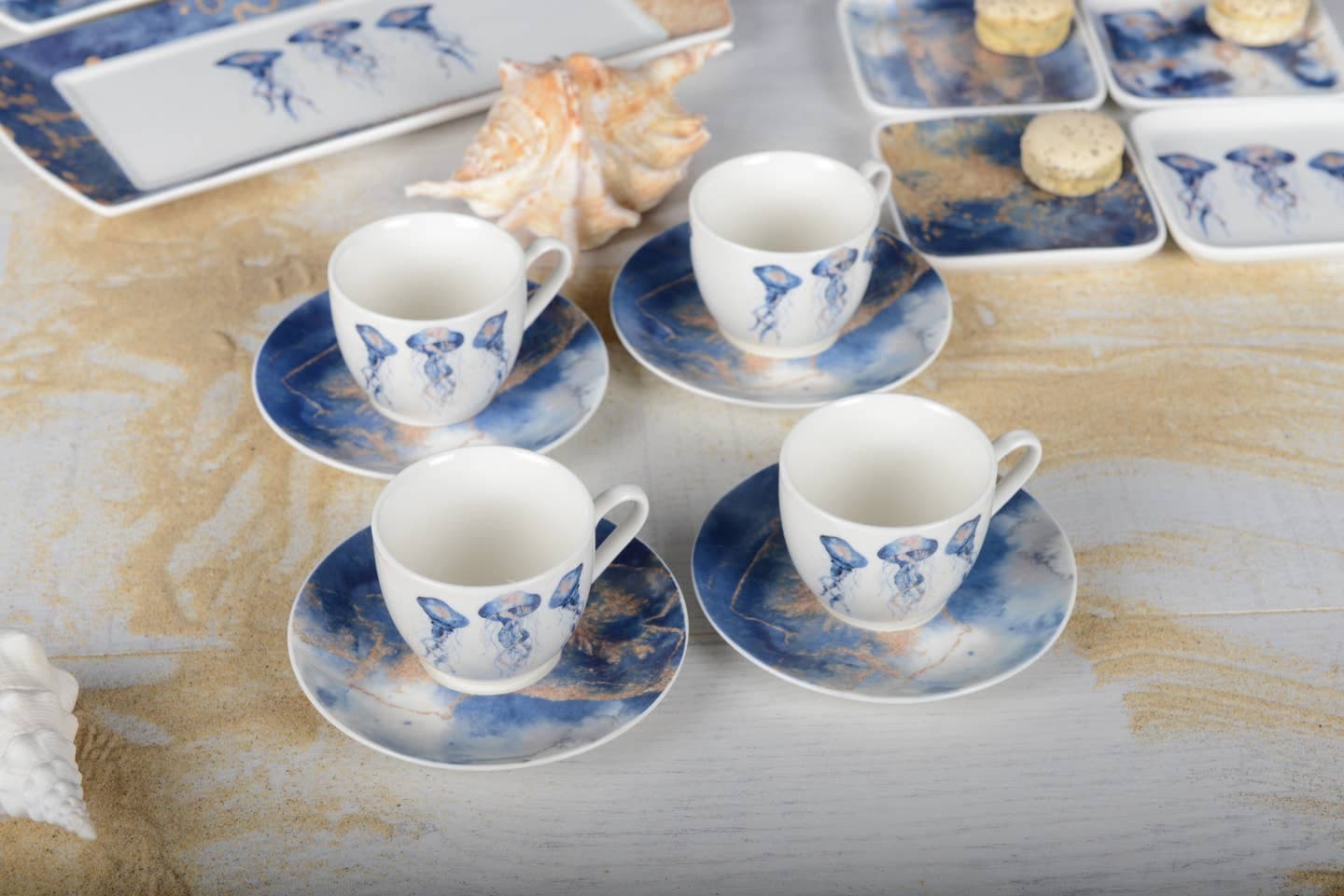 Jellyfish Coffee Cups with Saucers Set Of 4