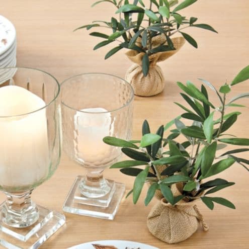 Enhance your space with Olive Branches in Burlap. Handmade Foliage with Natural Burlap Ball for Tabletop Decor. Shop now at Ballard Designs.
