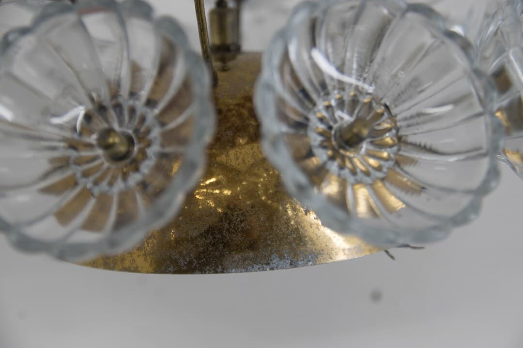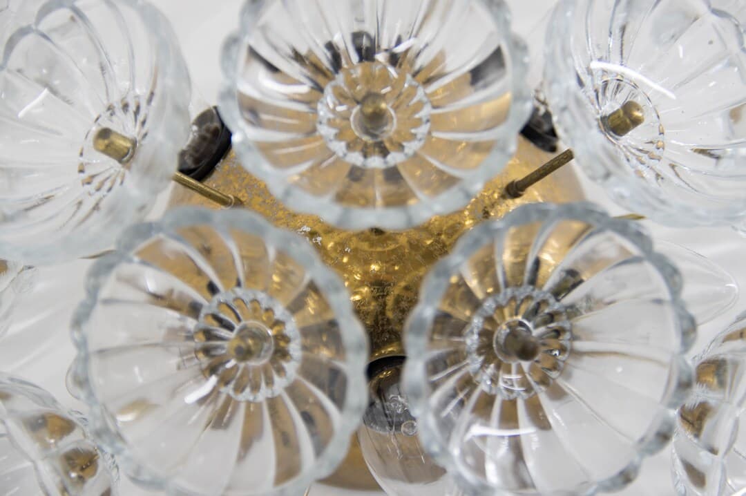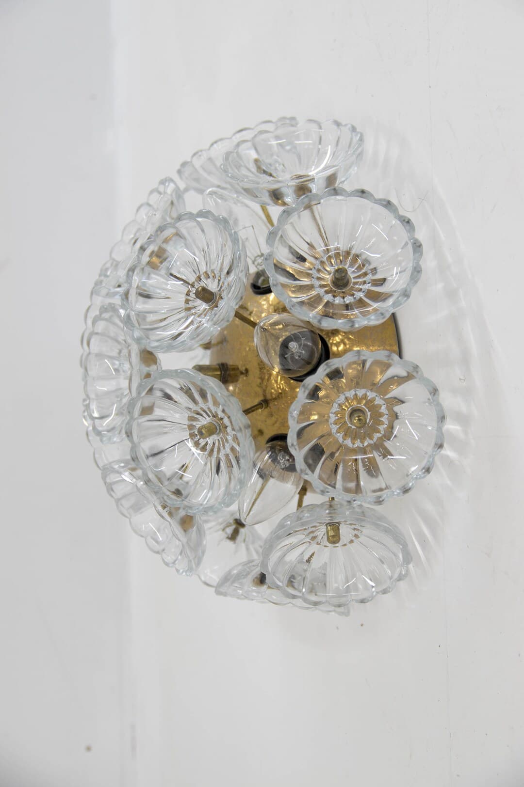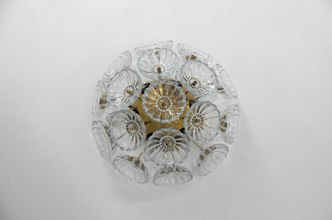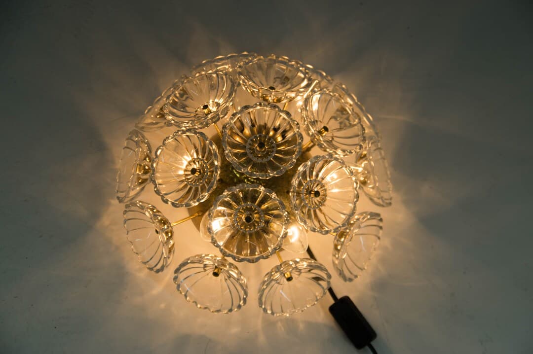 This Sconces item by Davintdesign has 17 favorites from Etsy shoppers. Ships from Czech Republic. Listed on Mar 26, 2025. Elegant dandelion wall light or flush mount ceiling light. Lamp has seventeen glass flowers on a brass-plated metal frame. Manufactured by VEB, Germany in the 1960s. Glass in perfect condition. Brass with age patina. 6x40W, E12-E14 bulbs.