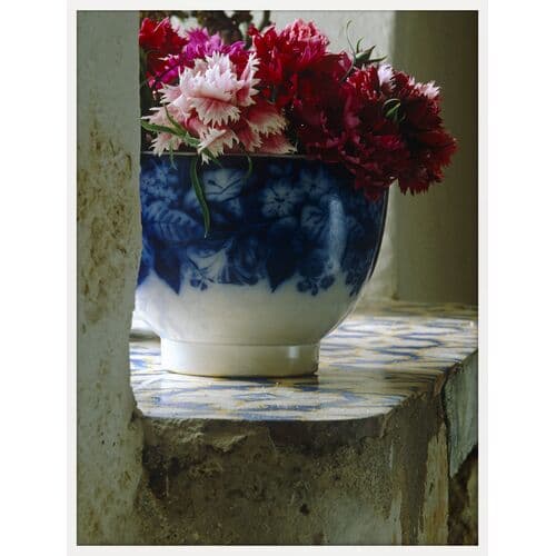 Completed Size: 26.375" x 34.375". This photo by Eric Morin captures a tin-glazed earthenware bowl filled with flowers.