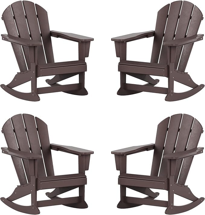 WO Home Furniture Patio Rocking Chair Set of 4 PCS Classic Outdoor HDPE UV Weather Resistant (Dark Brown)
