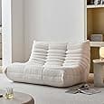 Fireside Loveseat Sofa Couch, Modern Chenille Fabric Togo Sofa Bean Bag Chair Lazy Floor Sofa with High-Density Foam Caterpillar Sofa Floor Couch Corner Togo Chair for Living Room Bedroom Salon Beige