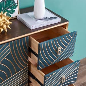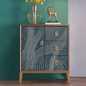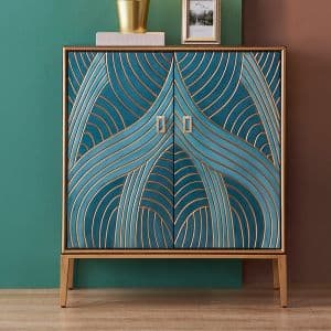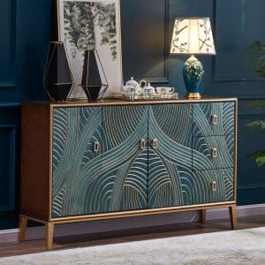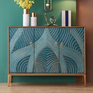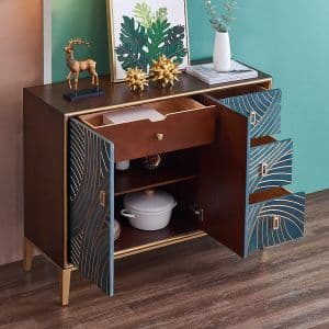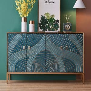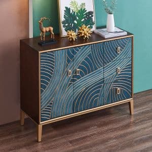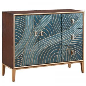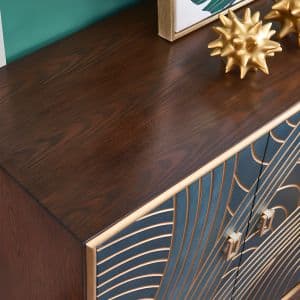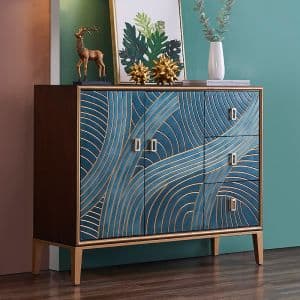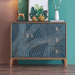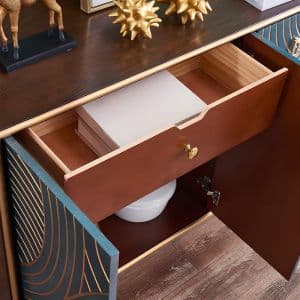 Art Deco Two Toned Freestanding Buffet Table with Golden Legs, 2 Drawers, 59"L x 15"W x 36"H