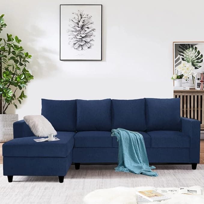 FURNY Scaland 5 Seater Fabric LHS L Shape Sofa Set (Blue)