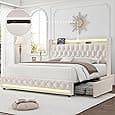 Buy LARMACE King Size Bed Frame with Storage 4 Drawers, Velvet Upholstered Platform Bed with Headboard and LED Lights & USB Charging Station, No Box Spring Needed, Easy Assembly, Beige: Bed Frames - Amazon.com ✓ FREE DELIVERY possible on eligible purchases