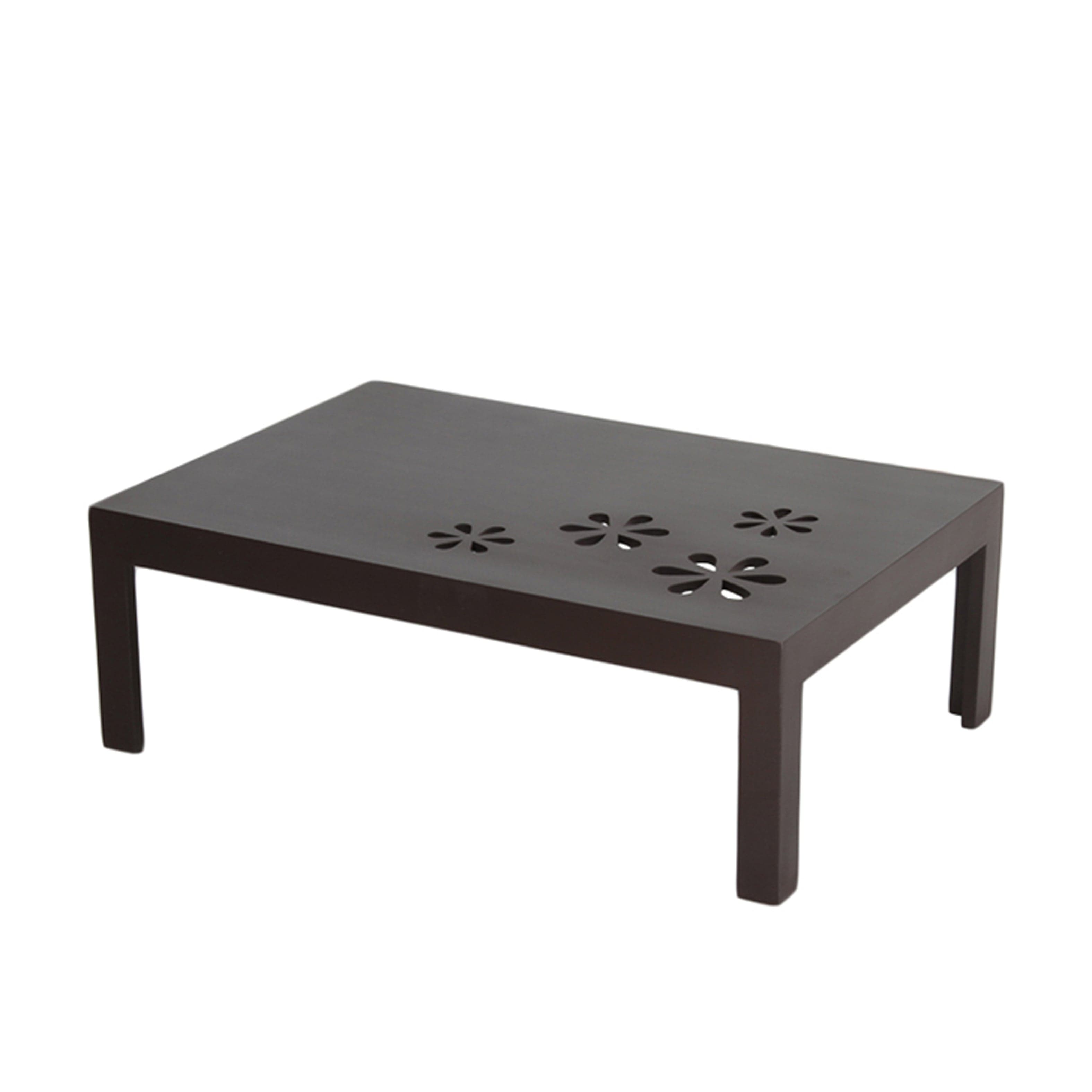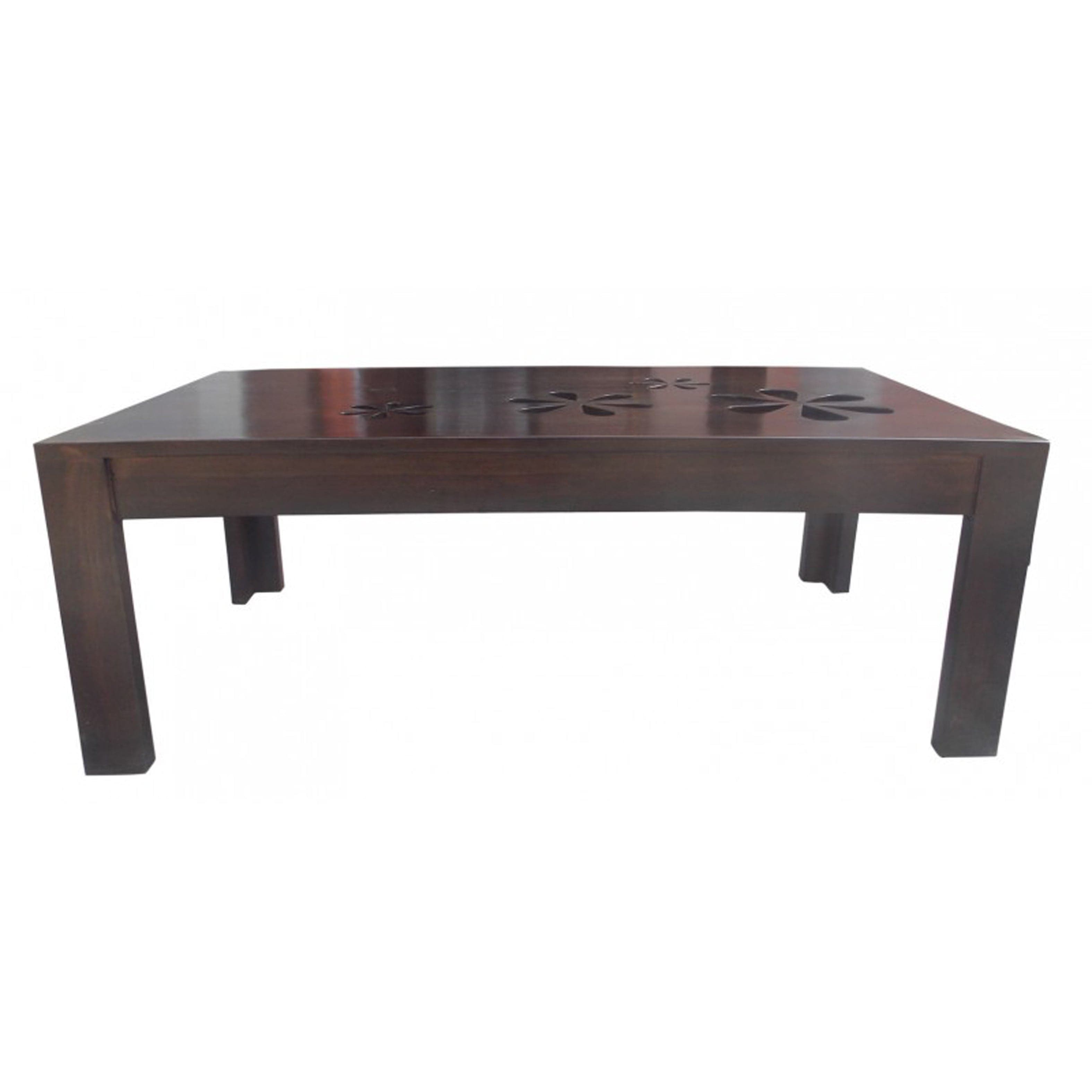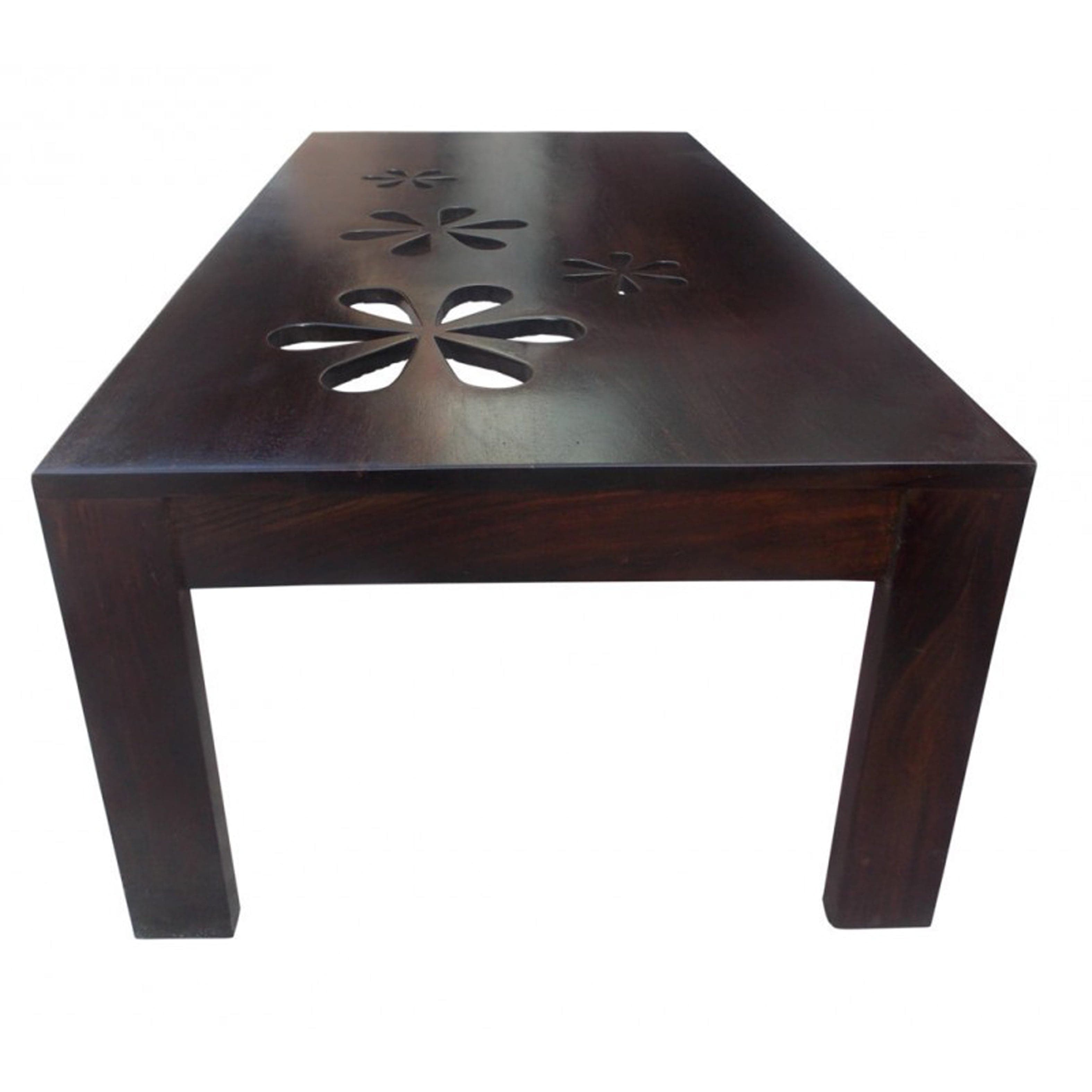 Flower Centre Table by Induscraft in Solid Sheesham Wood with Carved Floral Pattern
