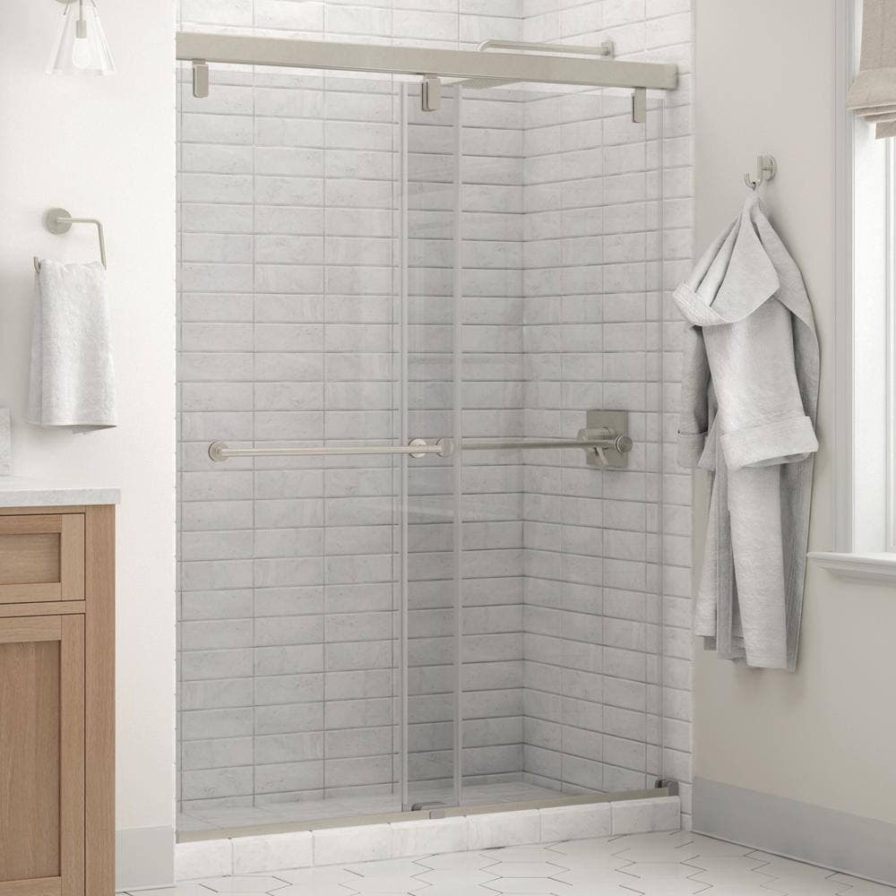 Delta Everly Mod 50-1/8 to 58-1/2 in. W x 71-1/2 in. H Soft-Close Frameless Sliding Shower Door in Nickel with Clear Glass SD3442060 - The Home Depot