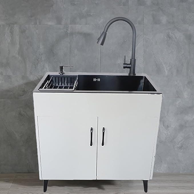 Single bowl stainless steel kitchen utility sink cabinet, floor-standing bathroom corner sink cabinet, freestanding balcony sink cabinet with pull-out faucet, suitable for indoor and outdoor use ( Col