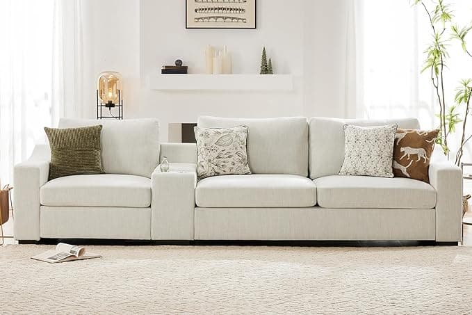 Buy Luxury Sectional Sofa with Console, 2 Cup Holders, Upholstered Modern Linen Fabric 4-Seat Couch with Sloped Armrests & Detachable Cover, Modular Sofa Couches for Living Room, Apartment, Office, Ivory: Sofas & Couches - Amazon.com ✓ FREE DELIVERY possible on eligible purchases