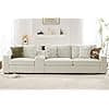 Luxury Sectional Sofa with Console, 2 Cup Holders, Upholstered Modern Linen Fabric 4-Seat Couch with Sloped Armrests & Detachable Cover, Modular Sofa Couches for Living Room, Apartment, Office, Ivory