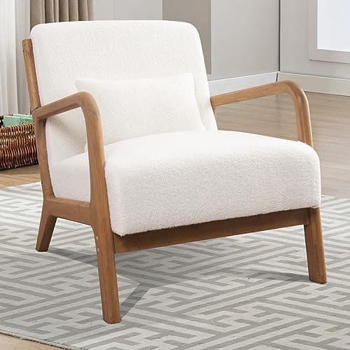 Buy INZOY Mid Century Modern Accent Chair with Lamb Wool Fabric, Upholstered Living Room Chairs with Waist Cushion, Reading Armchair for Bedroom Sunroom, White: Chairs - Amazon.com ✓ FREE DELIVERY possible on eligible purchases