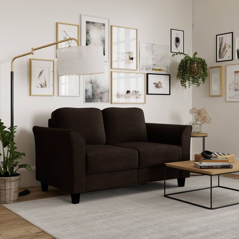 Willow Loveseat Coffee - Lifestyle Solutions: Kiln Dried Wood Frame, Microfiber Cushions, 2-Seater