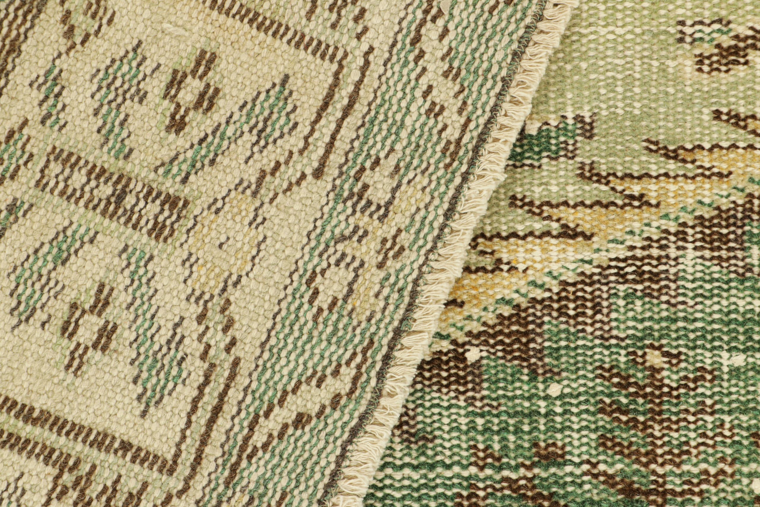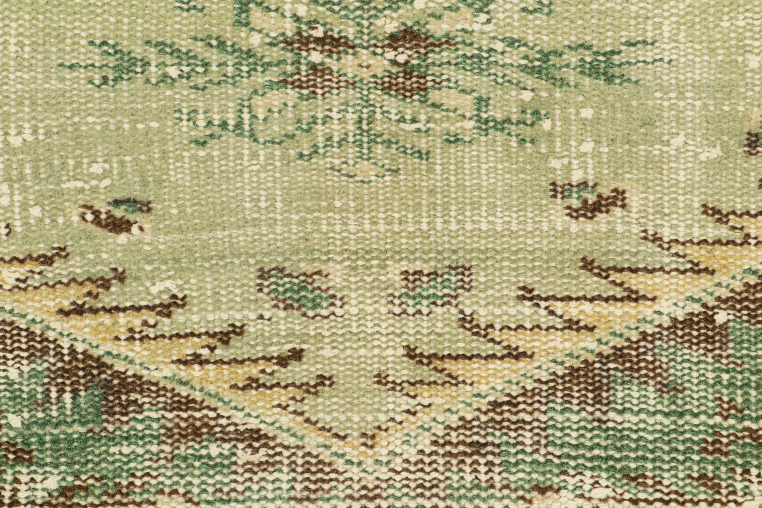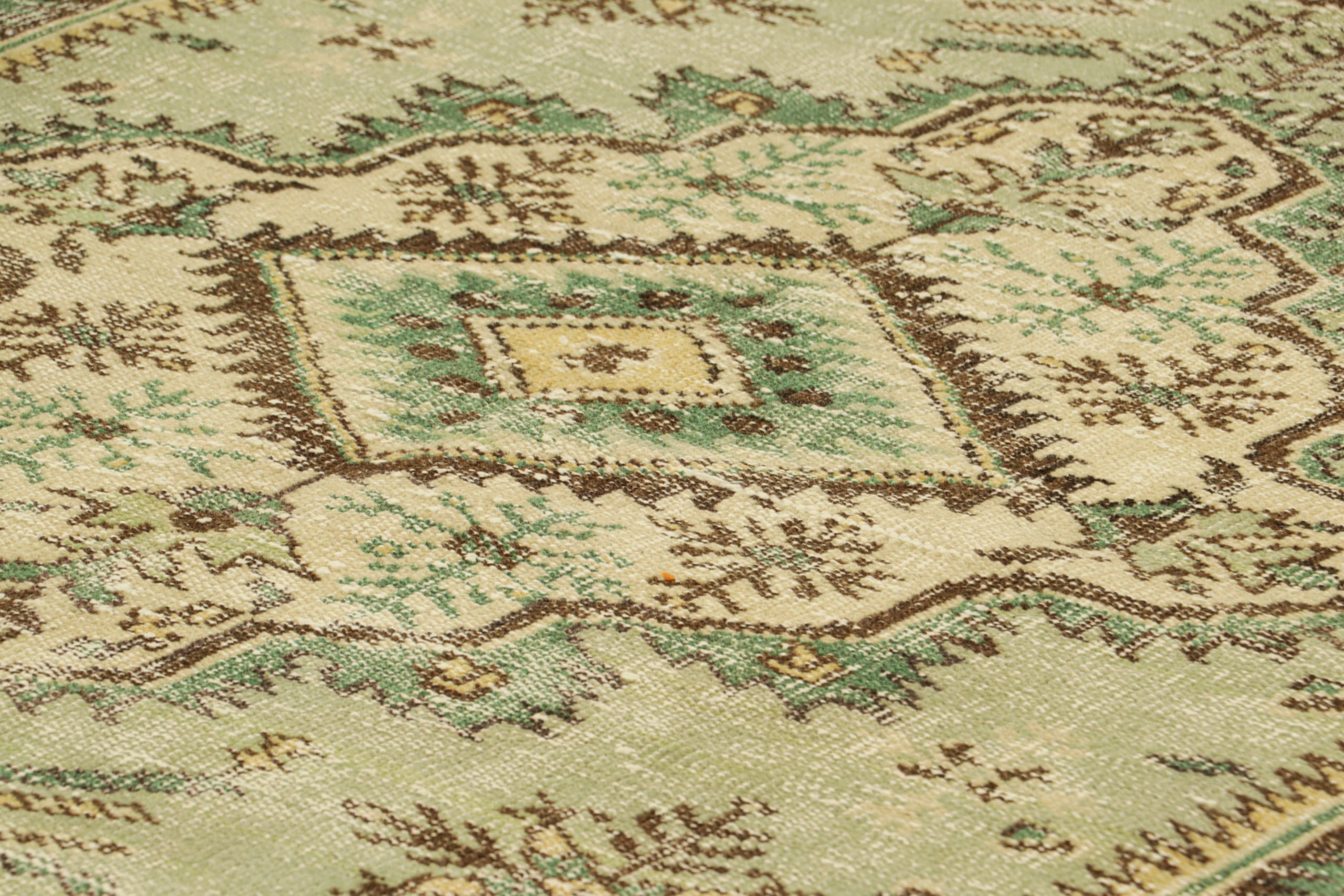 Hand-knotted in wool, this 6x10 vintage Turkish rug in green, circa 1960-1970, is a unique addition to the Vintage Collection from Rug & Kilim—a curation of rare vintage rugs believed to hail from Turkish artist Zeki Müren.