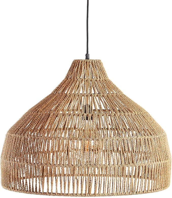 The handwoven boho rattan lampshade features a rattan basket design with a 47.2" adjustable cord, which connects with an E27 lamp holder at the end. After connecting the bulb, the soft light will illuminate the dark corners, creating a retro and charming atmosphere. Material: Rattan, Color: Brown, Power: Max of the bulb is 60W, Voltage: 110-120V, Applicable Bulb Type: E27 bulbs needed (Bulbs not included), compatible with incandescent, LED, and halogen bulb, Dimmable: Fully dimmable when using a dimmable bulb and compatible dimmer switch (Not Included), Safety: Socket and wire are UL listed.