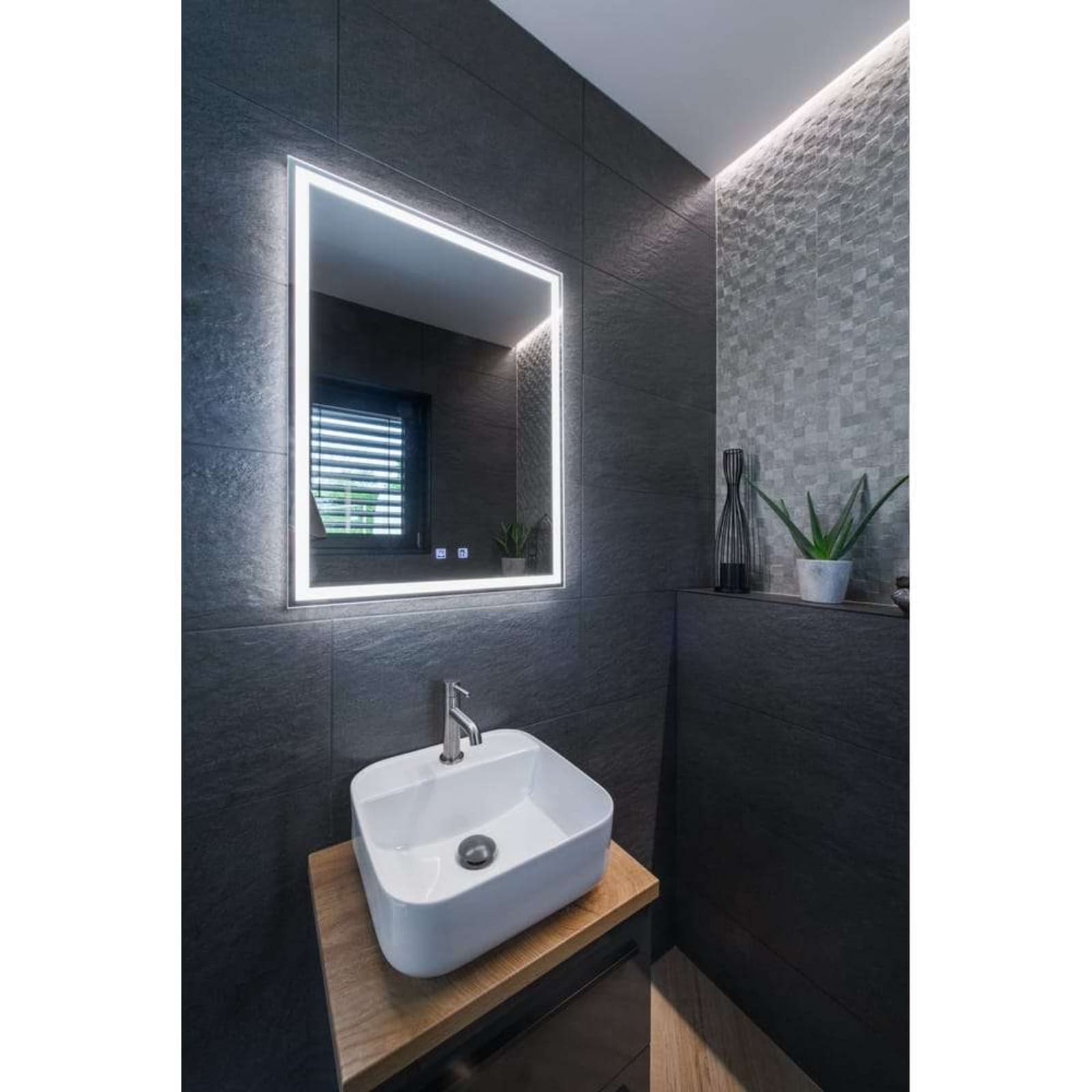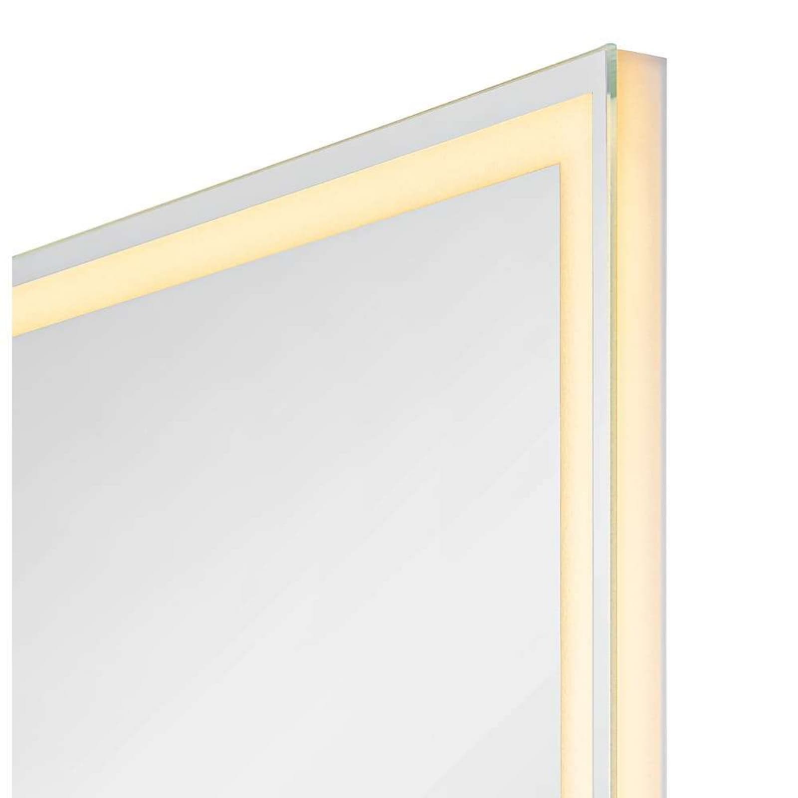 Trukko WL Mirror Square Defog from SLV is an elegant wall light designed for bathrooms and mirror areas. With its anti-fog technology, the lamp ensures an always clear mirror, even in humid environments. Its slim glass design measures 800 mm in height, 600 mm in width and just 28 mm in depth, making it perfect for both small and large spaces. A special feature is the integrated CCT switch that allows you to switch between 3000 K, 4000 K and 6500 K depending on your lighting needs.
