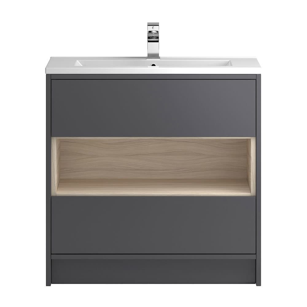Hudson Reed Coast 800mm Floorstanding 2 Drawer Vanity Unit With Open Shelf