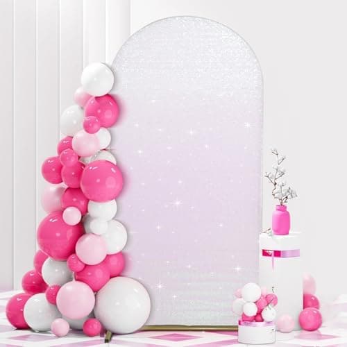 PartyDelight Arch Sequin Backdrop Cover 6.6FT Sparkly Iridescent White Wedding Back Drop Fitted Arch Stand for Birthday Party Decoration