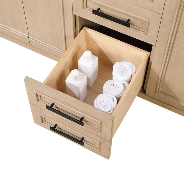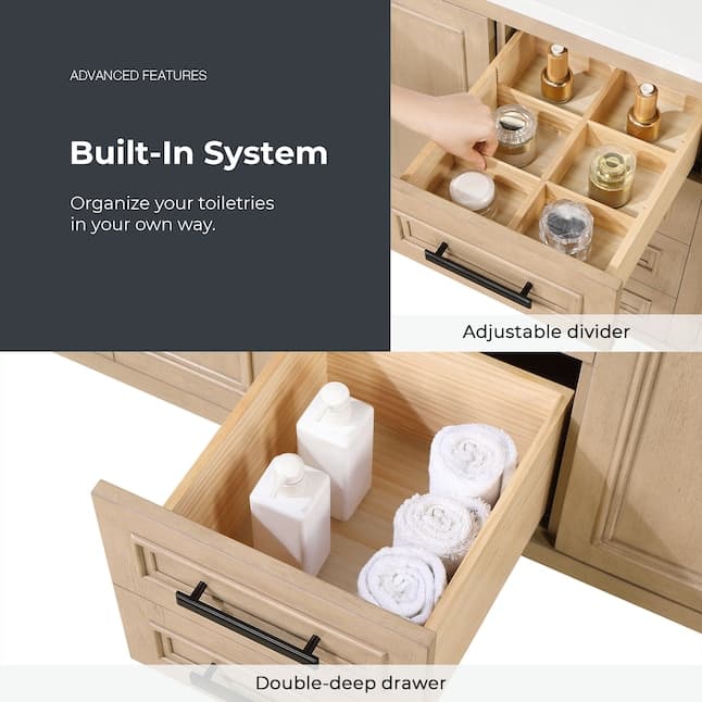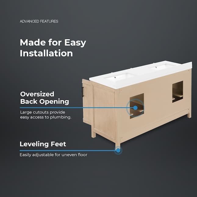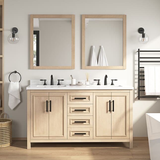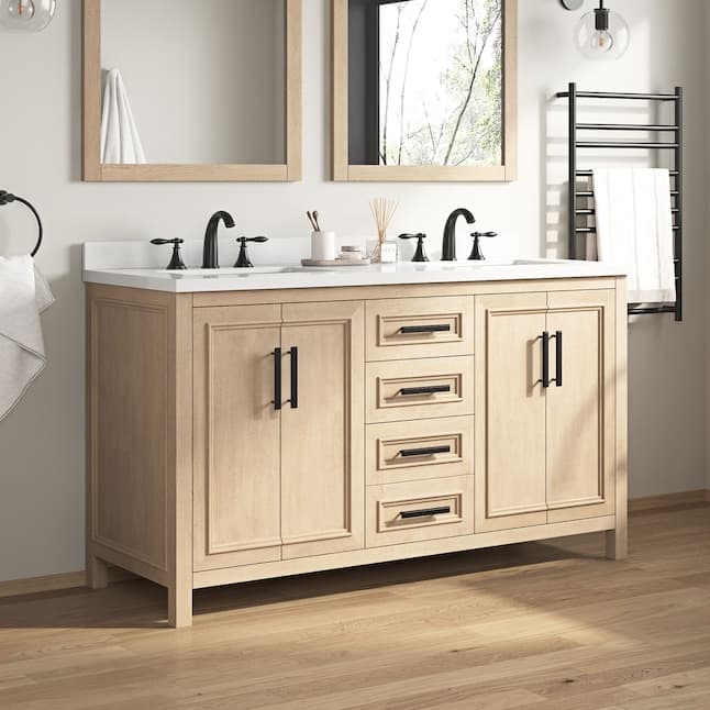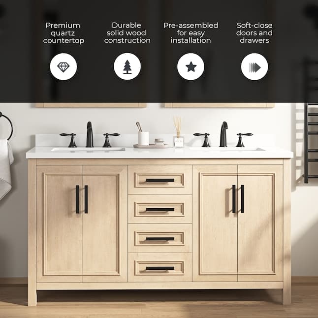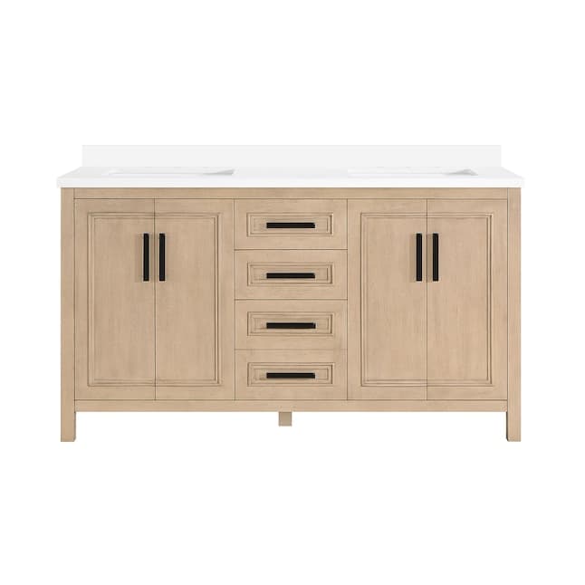 OVE Decors Nyall 60-in Sahara Birch Undermount Double Sink Bathroom Vanity with White Quartz Top